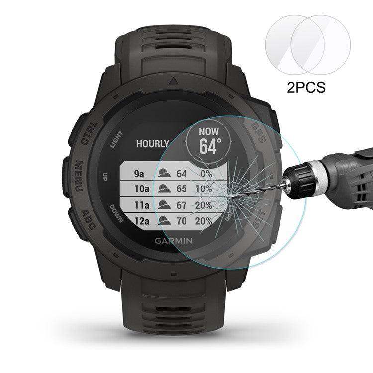 2PCS HAT PRINCE for Garmin Instinct Tempered Glass Screen Protector Film 0.2mm 9H 2.15D Arc Edge