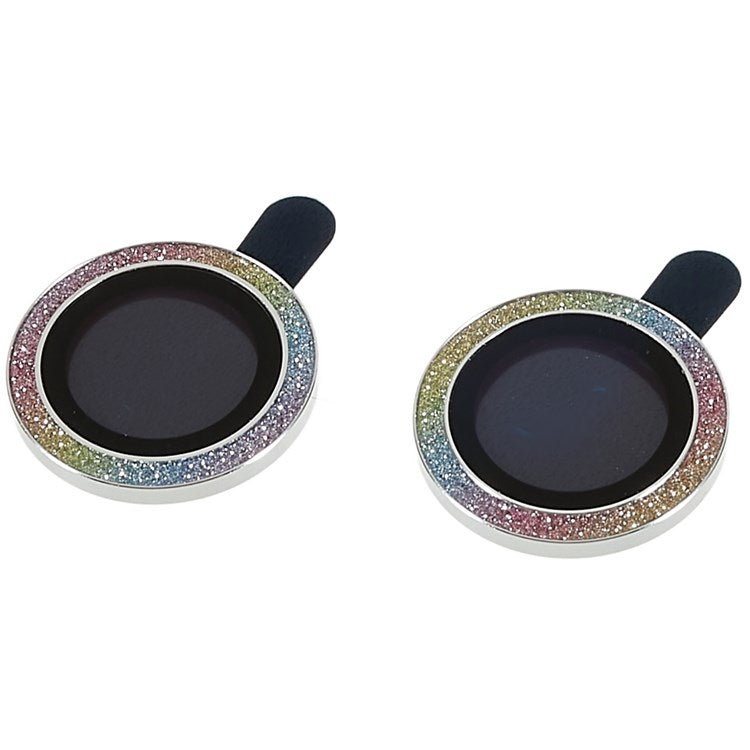 2Pcs / Set for iPhone 14 6.1 inch / 14 Plus 6.7 inch Glitter Rhinestone Camera Lens Protector Metal Ring Tempered Glass Lens Fim - Colorful Silver