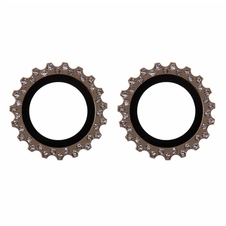 2Pcs / Set For iPhone 16 / 16 Plus Camera Lens Protector Gear Shape Rhinestone Decor Corning Gorilla Glass Lens Film - Gold