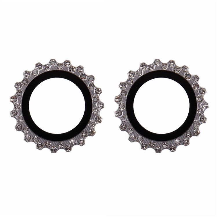 2Pcs / Set For iPhone 16 Plus / 16 Camera Lens Protector Gear Shape Rhinestone Decor Corning Gorilla Glass Lens Film - Silver