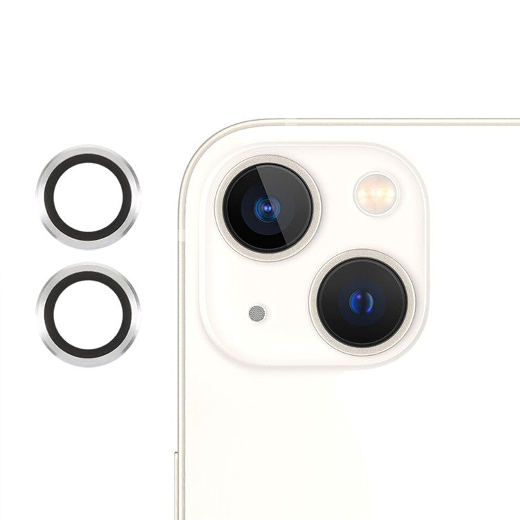 2pcs/Set Monochrome Design AGC Glass Camera Lens Protector Film Guard for iPhone 13/13 mini - Silver