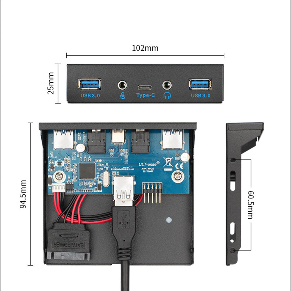 Provides front USB3.0 AF, USB Type-C interface, and audio interface
