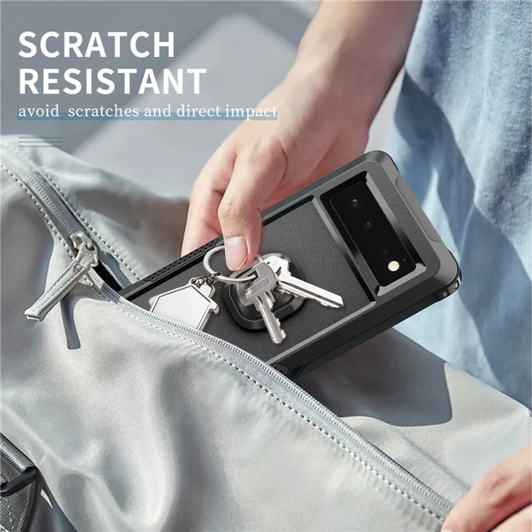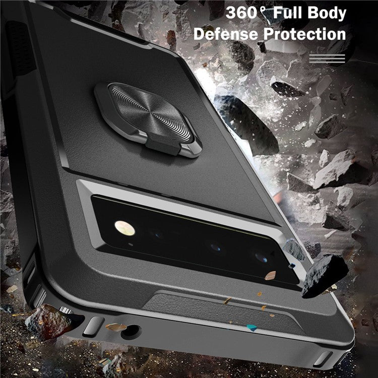 3-in-1 Drop-proof Phone Case For Google Pixel 6, Kickstand Ring Holder Precise Cutouts Phone Back Cover - Black