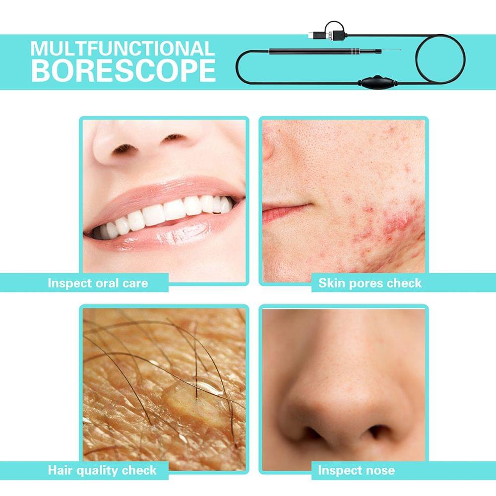 Want to clean the foreign matter of ear? Want to clear the earwax with the magic earpick? Try our 3-in-1 USB Ear Cleaning Earpick Endoscope! You can stick it in your ear or apply medicine to the inner ear. This 3-in-1 USB ear cleaning endoscope comes with electronic micro-camera you can achieve real-time observation of the whole process of digging earwax through the USB data cable.Easy to connect with PC and phones(support OTG function) very convenient to use.Features:[Multi-functional Endoscope]You can use it for daily cleaning care cleaning ear digging earwax and applying medicine to the inner ear ear disease patients can also observe the ear canal.[3-in-1 USB Ear Cleaning Endoscope]The endoscope can be connected with your computer or mobile phone via the USB port micro USB or type-c convenient to use on OTG Android device tablet Windows PCs Windows XP/7/8/10/vista no need for extra adapter.?Not support iphone?[Camera with Adjustable LED Light]The mini 5.5mm diameter camera is equipped 6pcs of LED light with adjustable brightness so that you can use it in dark places without worrying about no amply light.[Special Focus Ultra Small Distance to See More Clearly]This inspection camera has 0.3MP pixel so you can see the clear pictures of your ear in your computer and mobile phones.[Practical Interesting Household Tool]A essential tool for each family you can tell the ear canal health status check the ear canal and check other body parts such as scalp pores comedones ear canal oral cavity nasal cavity and so on.Highlights:Support System: Android/Windows/MacSupport Connector: Micro USB / TYPE-C / USBImaging Sensor: CMOSCamera Pixel: 0.3MPCamera Resolution: 640*480Horizontal View Angle: 70Power Supply: USB PowerLight Source: 6pcs of adjustable LED lamp brightnessDiameter of Camera: 5.5mmBest Camera Focal Length: 14-20mmPen Length: about 142.7mm / 5.62inNotice:Only work with Android system phone does not support iOS system.Suitable mobile phones need to be equipped: 1.Your Android phone must support OTG function 2. Your Android phone must support OTG function UVC free drive camera 3. Android 4.2 and all above are necessary and indispensable!Specification:Model: i96-30Color: BlackMaterial: Aluminum AlloySupport Capture Image Format: JPEGSupport Recording Video Format: AVICable Length: 2m / 6.56ftinCleaning Method: Wipe with alcoholEndoscope Weight: approx. 82g / 2.89ozPackage Size: approx. 20 * 10 * 2.8cm / 7.87 * 3.94 * 1.10inPackage Weight: approx. 115g / 4.06ozPackage List:1 * 3-in-1 Ear Cleaning Endoscope1 * Plastic Earpicks1 * Annular Earpicks1 * Protective Sleeve1 * Camera Protective Cover1 * Cleaning Cloth1 * Oral Mirrors1 * User Manual(English)