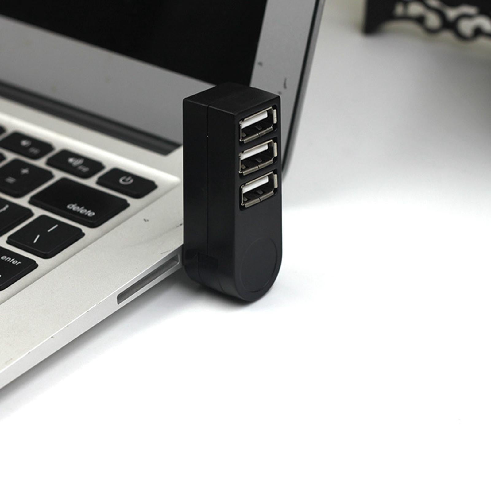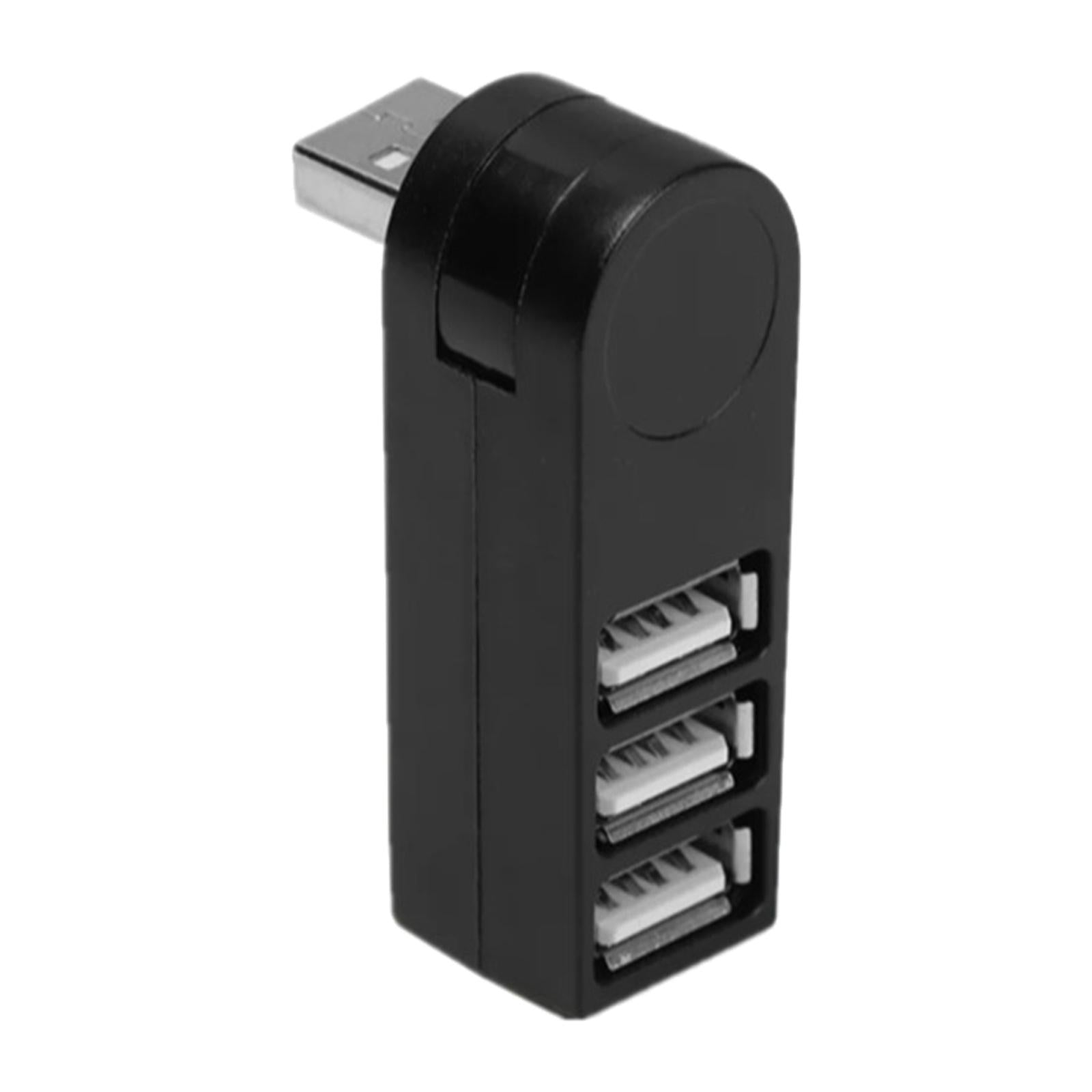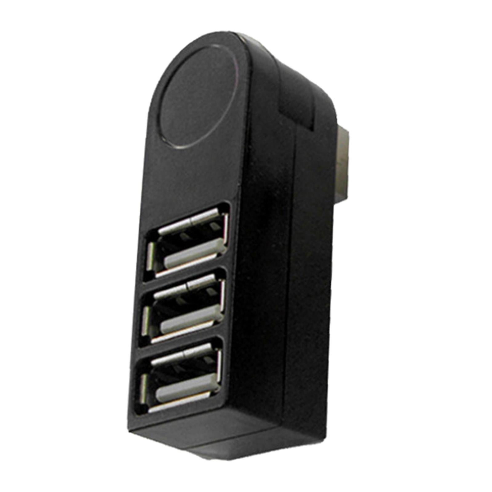 3 Port Mini USB 2.0 Hub 270 Degree Rotatable Compact Size Portable for Mouse Black