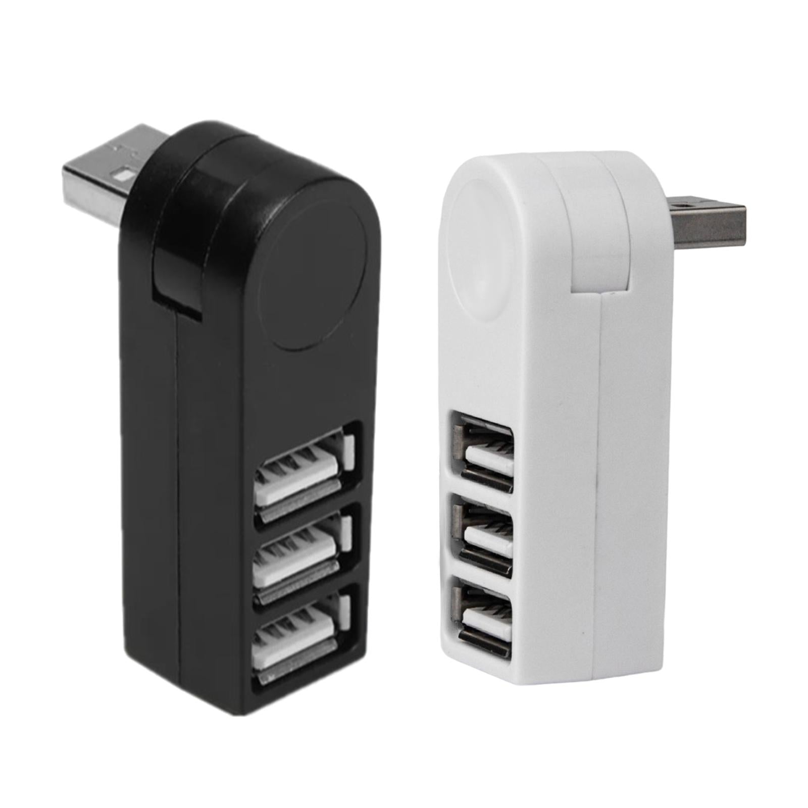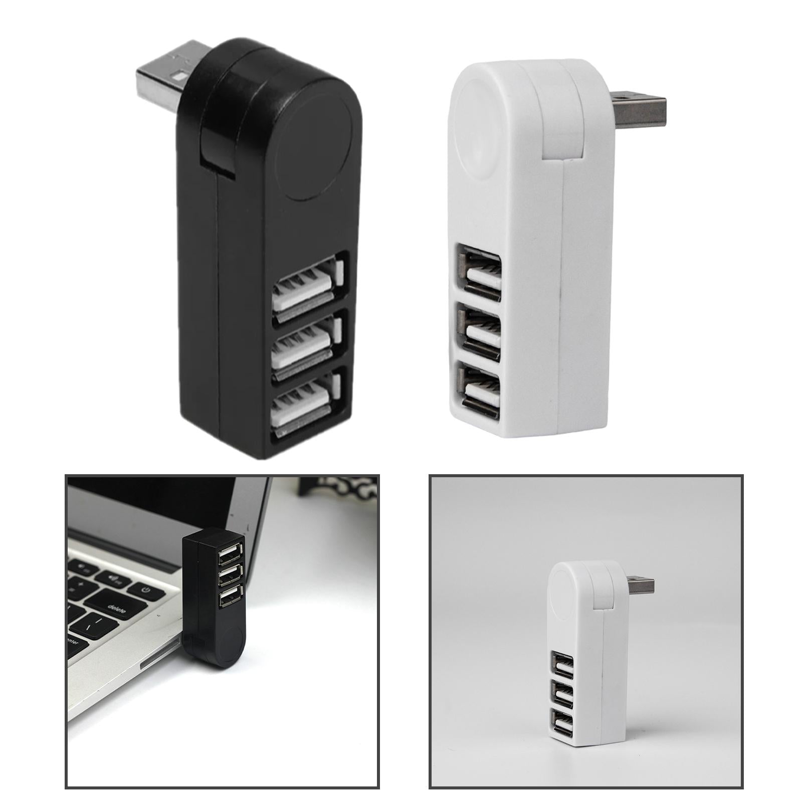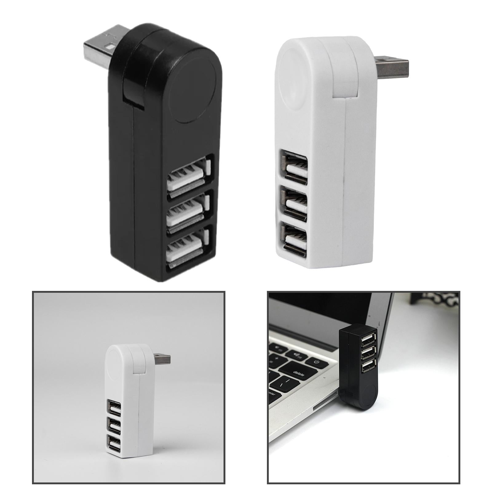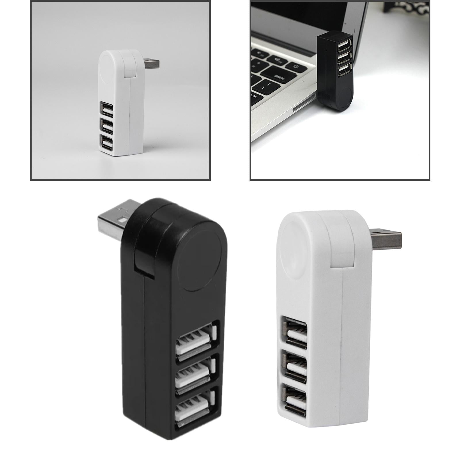 3 Port Mini USB 2.0 Hub 270 Degree Rotatable Compact Size Portable for Mouse Black