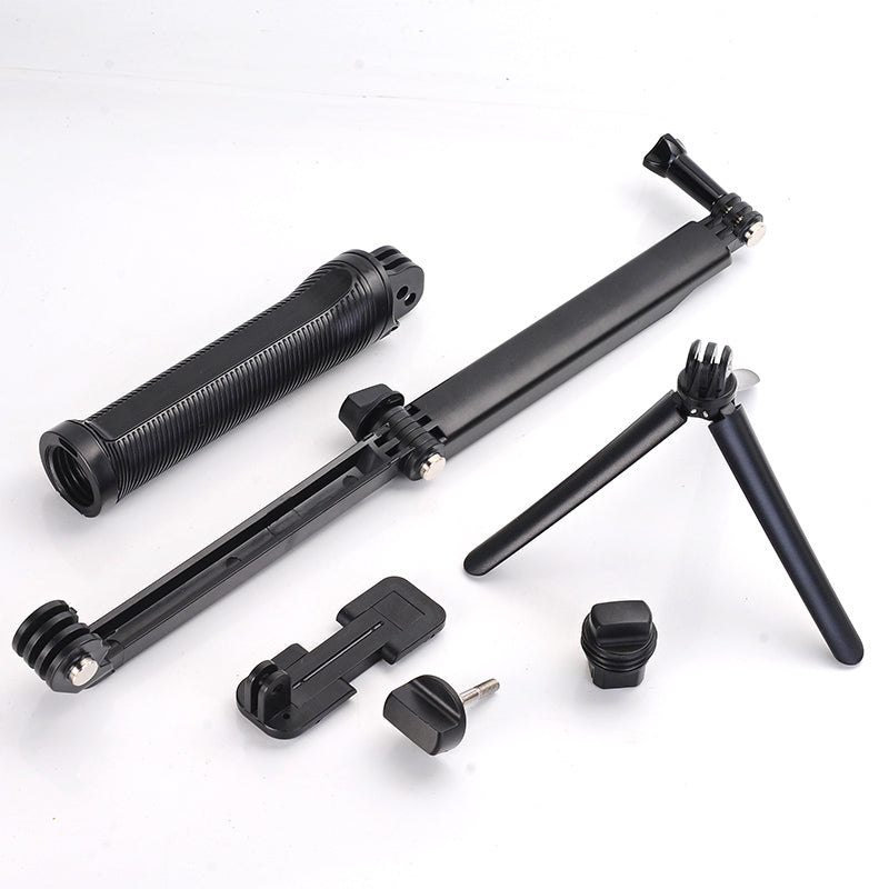 This ultra versatile mount can be used three main ways: as a camera grip, extension arm or tripod. The multi-functional handle can detach and be used as a lightweight camera grip. There is also a small tripod that can be removed or combined with the handle.