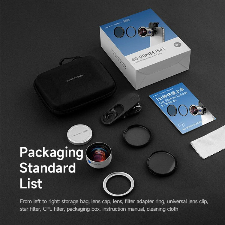 32X Magnification 40-90mm Focus Macro Lens for Smartphones Professional Photography External Lens