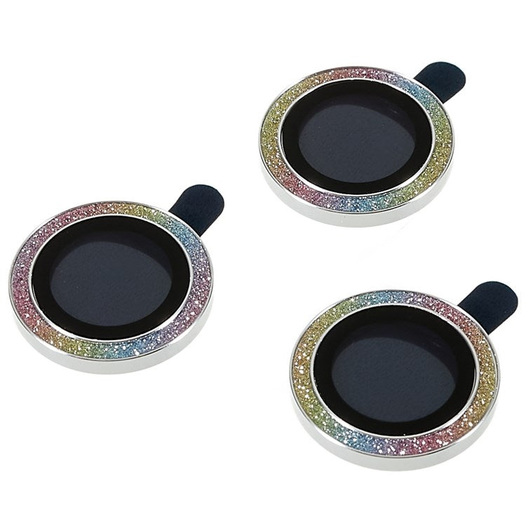 3Pcs / Set for iPhone 14 Pro 6.1 inch / 14 Pro Max 6.7 inch Rhinestone Camera Lens Protector Anti-scratch Tempered Glass Lens Cover - Colorful Silver