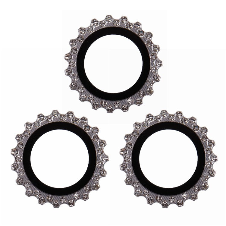 3Pcs / Set For iPhone 16 Pro / 16 Pro Max Camera Lens Protector Gear Shape Rhinestone Decor Corning Gorilla Glass Lens Film - Silver