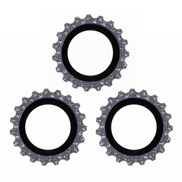 3Pcs / Set For iPhone 16 Pro Max / 16 Pro Camera Lens Protector Gear Shape Rhinestone Decor Corning Gorilla Glass Lens Film - Blue