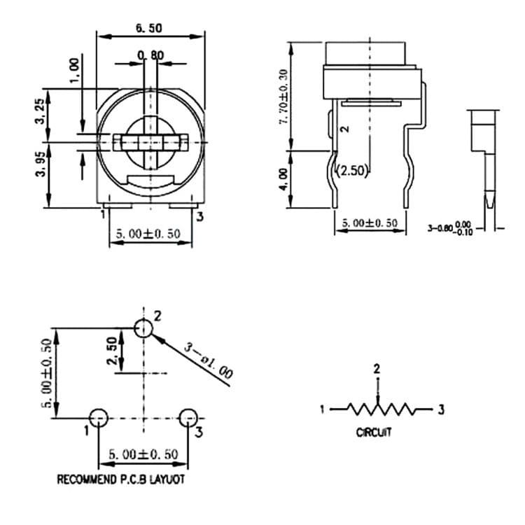 5 PCS 0.1W 50V Horizontal 502 5K Ohm Adjustable Resistor