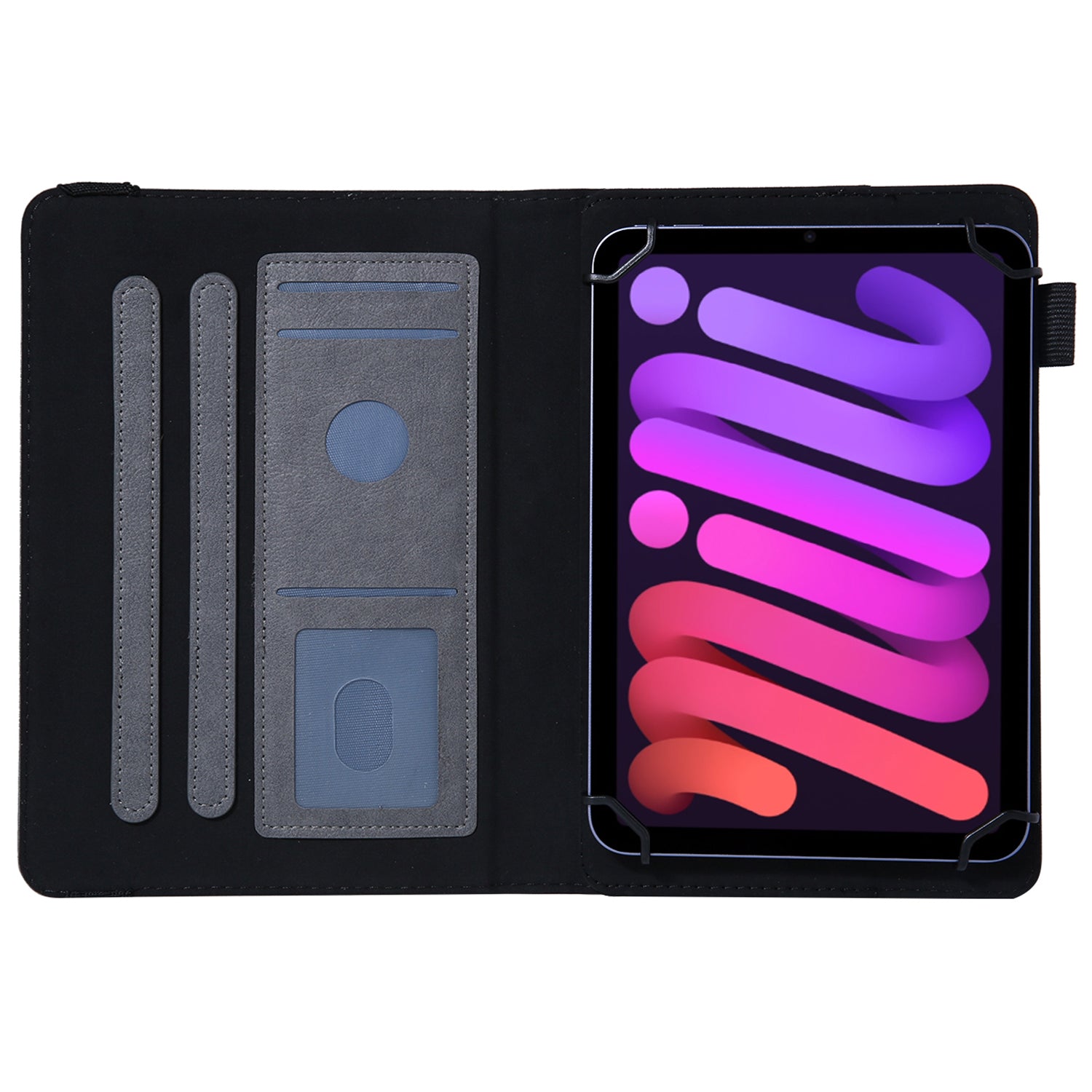 - Designed with an elastic band to securely close the case