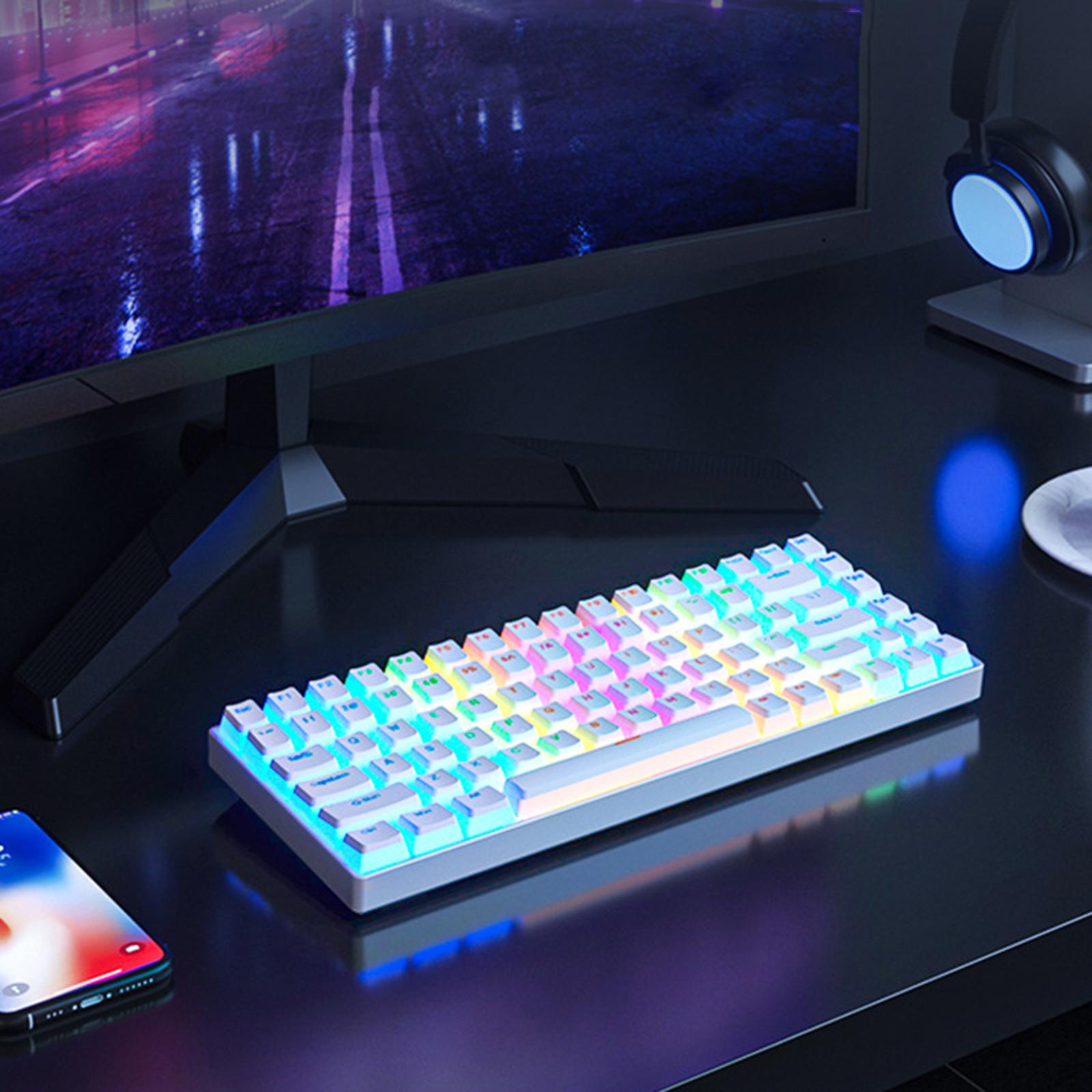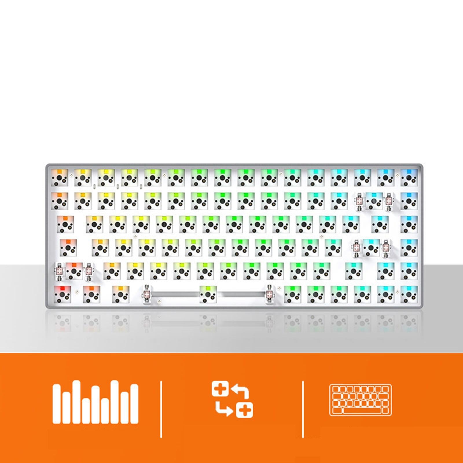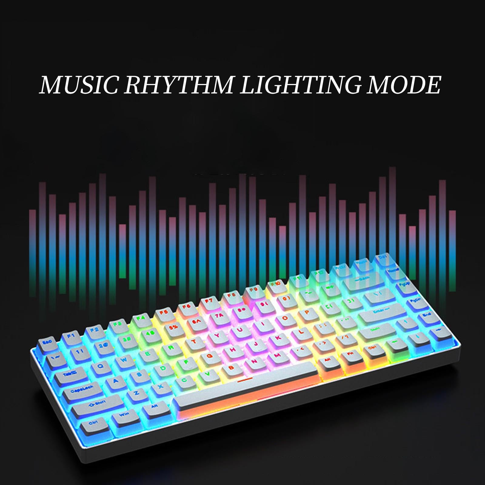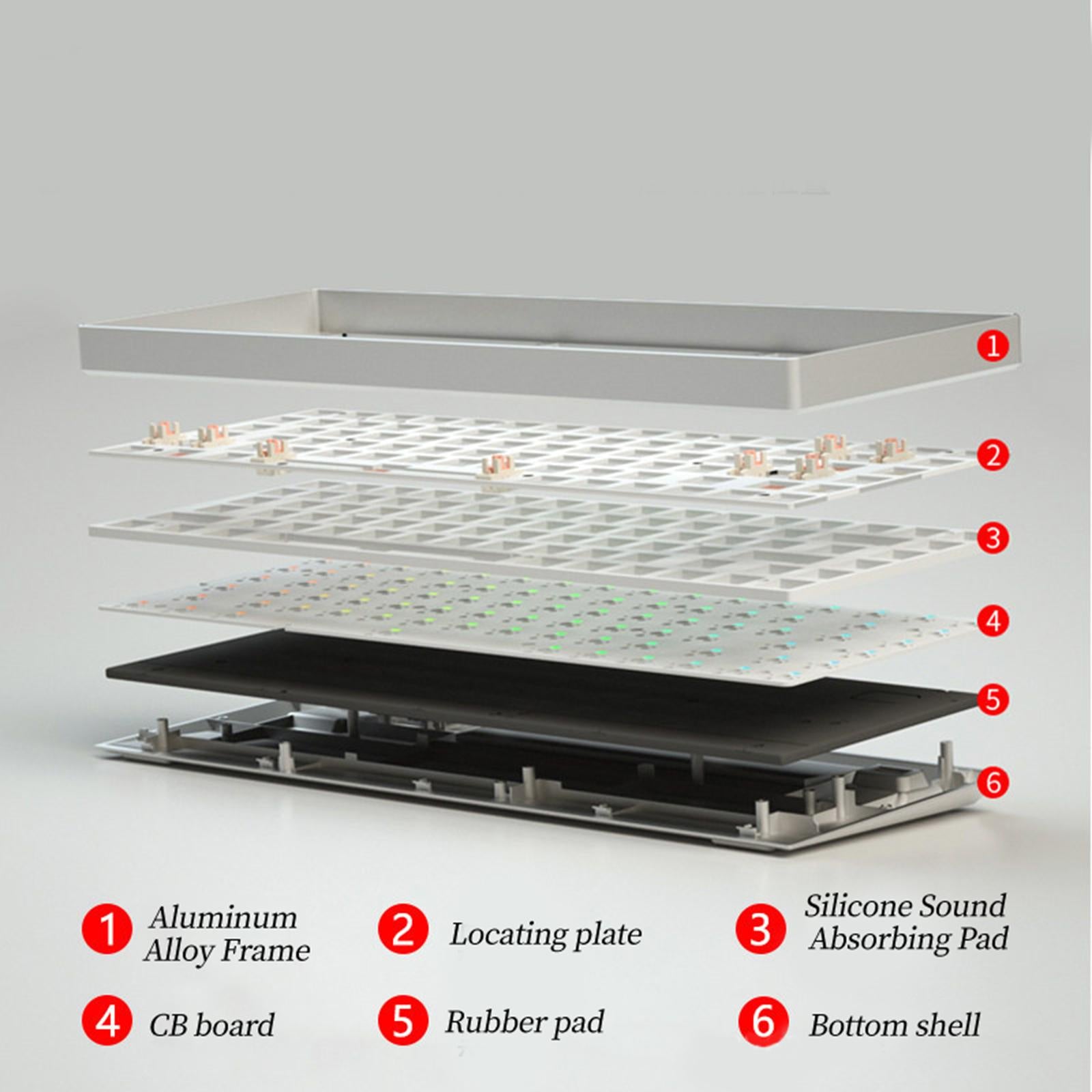 84 Key Mechanical Keyboard: 84 Key, compact layout, more space saving.Aluminum alloy middle frame + ABS injection molding bottom shell, white 1.2mm thick and hard double sided PCBA, white powder sprayed countersunk hole metal positioning plate, strong and durable, while giving you a different experience, feel more comfortable.