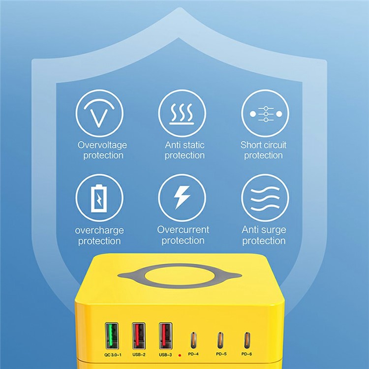963L All in one 140W 6 Ports Charging Station with Wireless Charging for Phones / Tablet / Laptop - EU Plug
