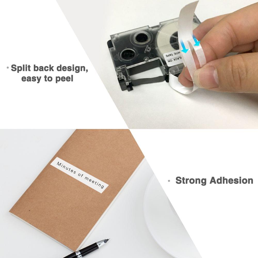 9mm Label Tape Compatible Tape Cartridge Ribbon Replacement - 9mm White on Clear