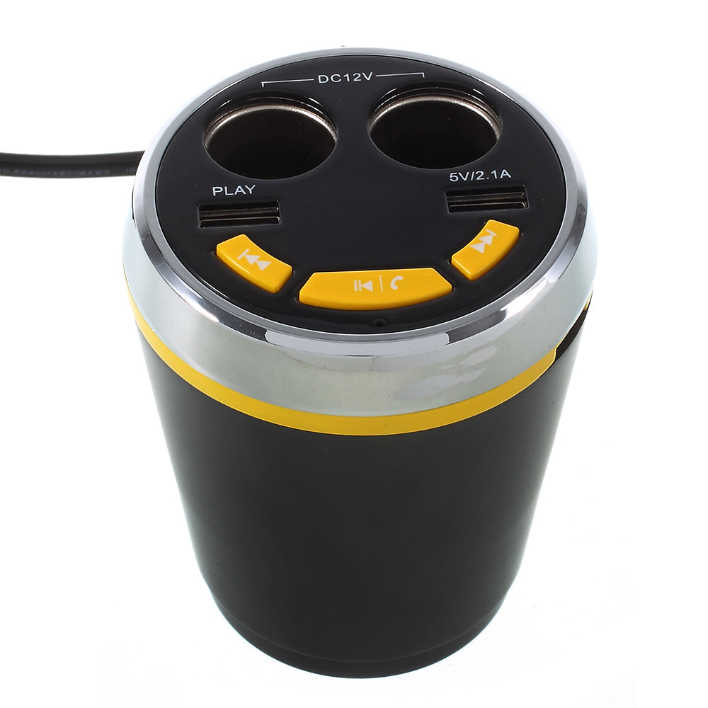 A23 Multi-functional Dual USB Car Charger Bluetooth Car FM Transmitter Support Hands-free Calls - Yellow