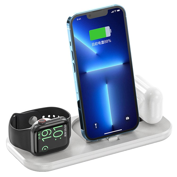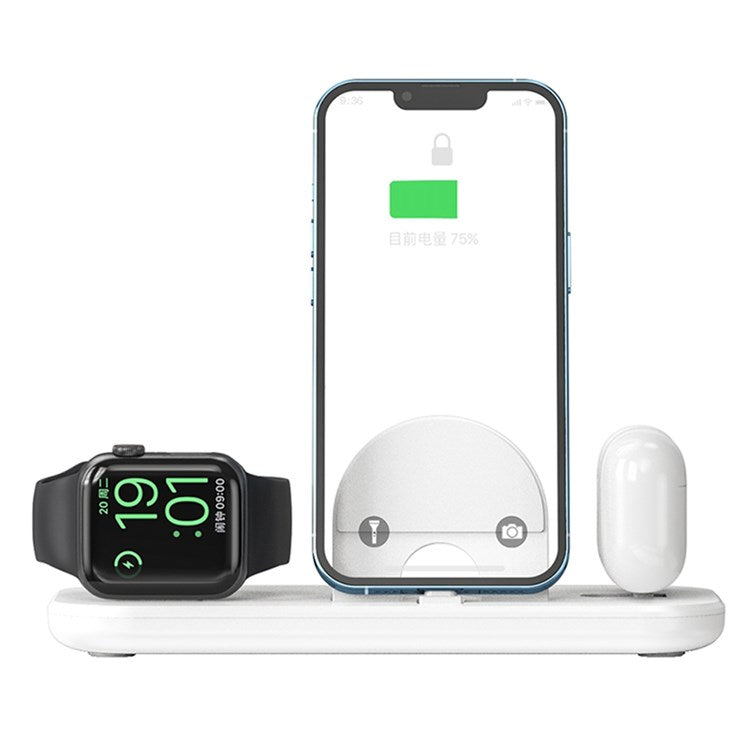 A32 3-in-1 Folding Charging Dock for iPhone AirPods Charging Station with Dual Lightning Connectors Portable Wireless Charger for Apple Watch Series - White