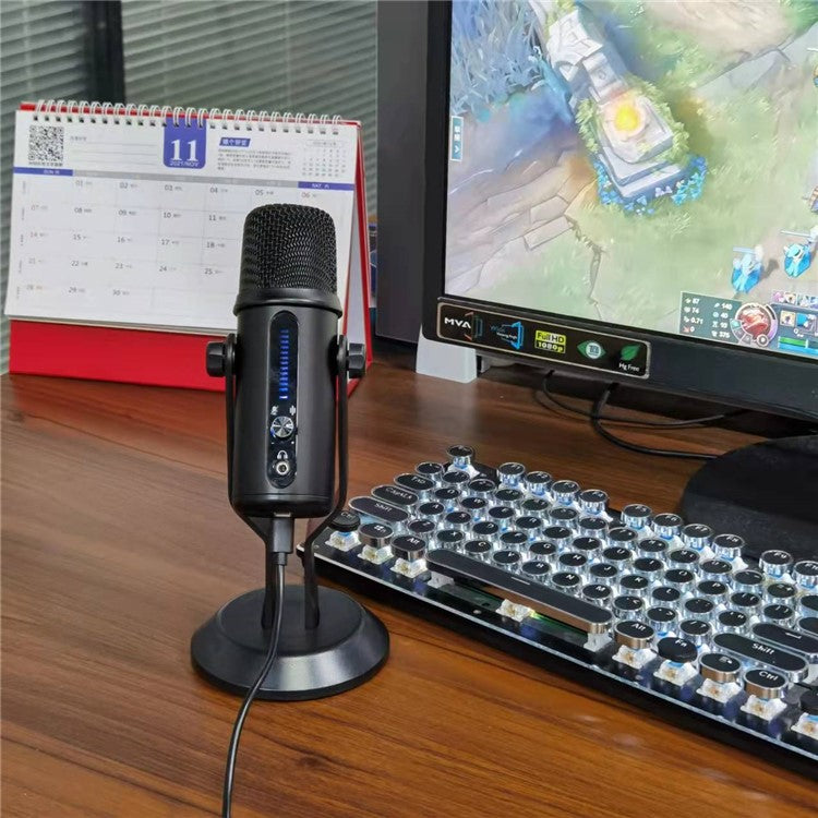 A33 LED Voice Control Breathing Light USB Unidirectional Condenser Microphone One-Key Noise Reduction Mic for Recording/Singing/Teaching/Gaming/Live Broadcast