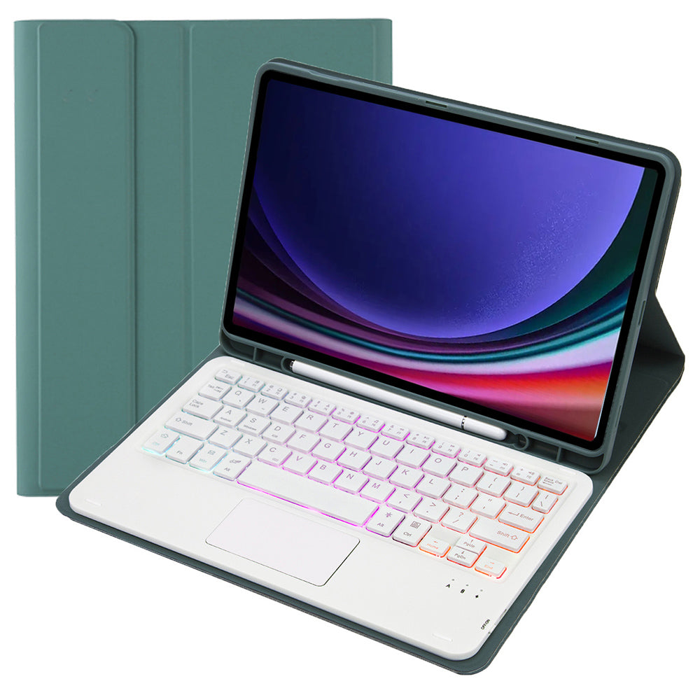 A710B-AS For Samsung Galaxy Tab S9 FE X510 / X516 Touchpad Backlit Bluetooth Keyboard Tablet Case - Dark Green