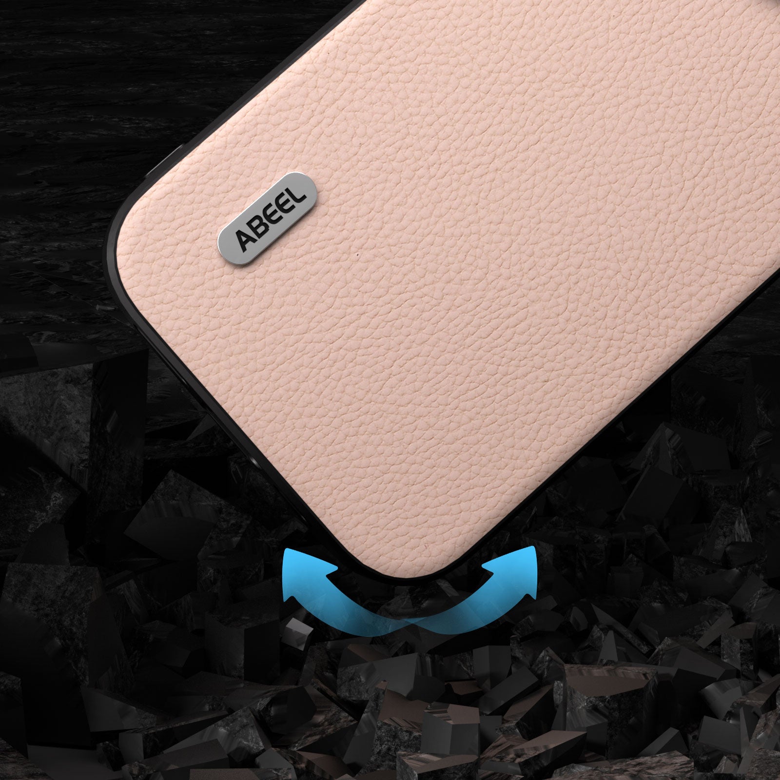 Cowhide Leather Coated PC+TPU Case for iPhone 15 Litchi Texture Shockproof Phone Cover - Pink
