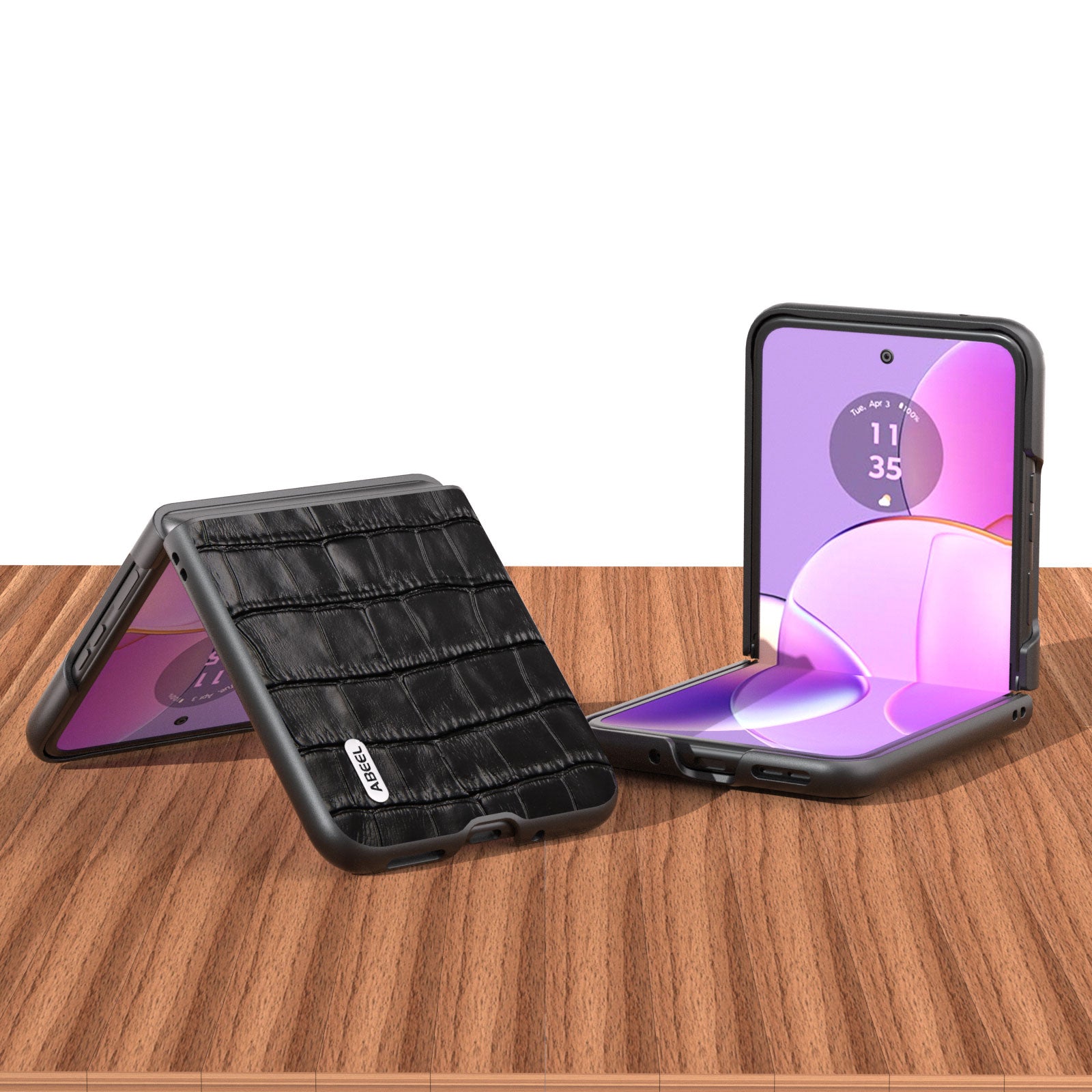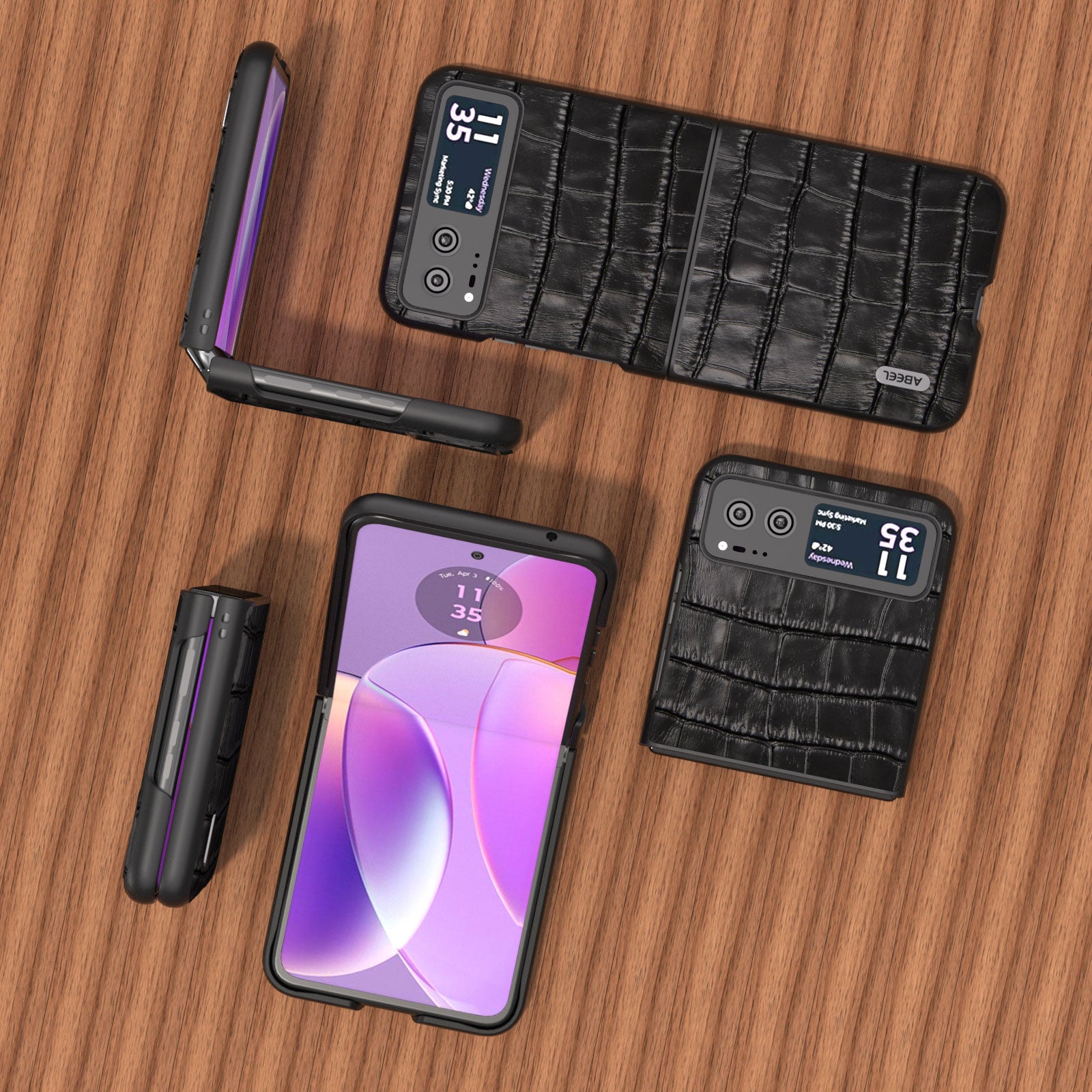 Crocodile Texture Phone Case for Motorola Razr 40 5G Cowhide Leather Coated PC Cover - Black