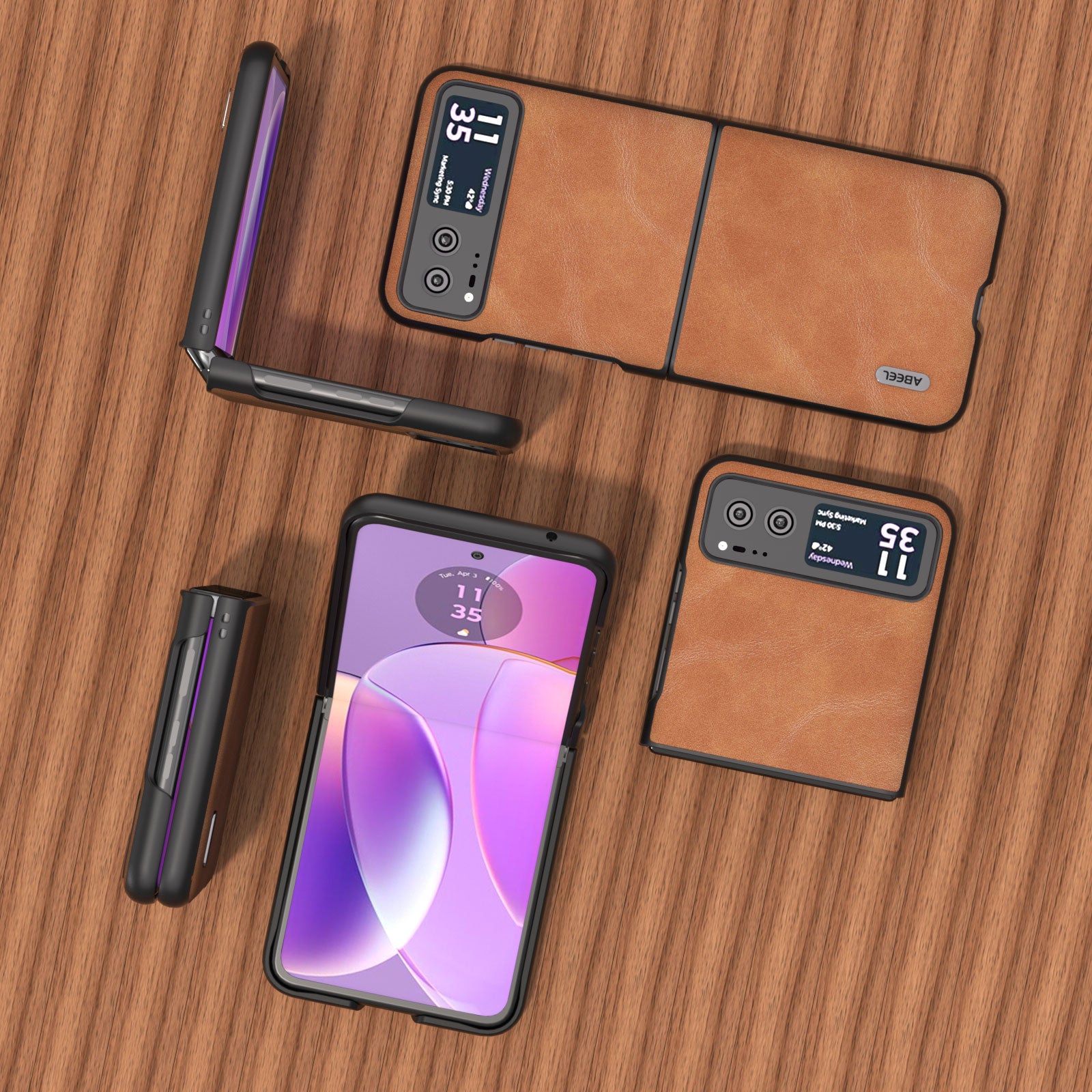 Uniqkart Folding Phone Case for Motorola Razr 40 5G PU Leather Coated PC Cowhide Texture Cover - Brown