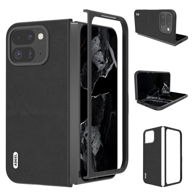 ABEEL For Google Pixel 9 Pro Fold 5G Case Genuine Cow Leather Hard PC Phone Cover - Black
