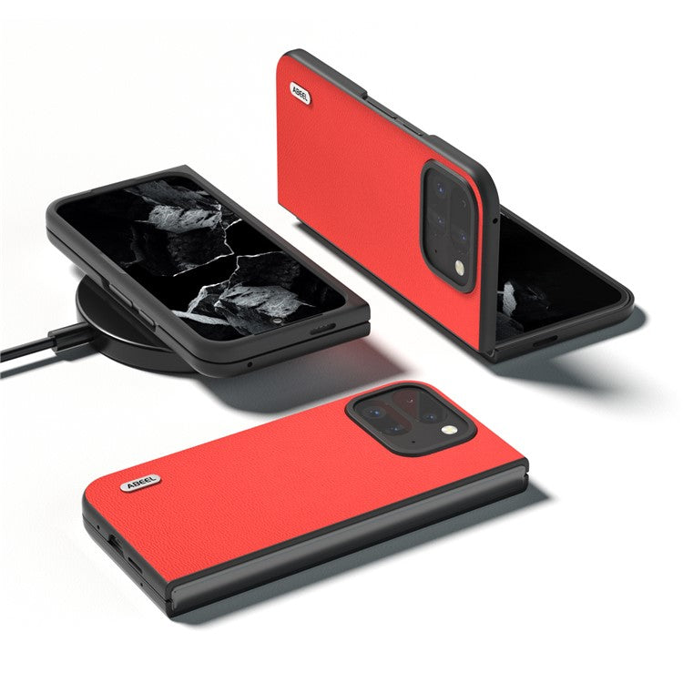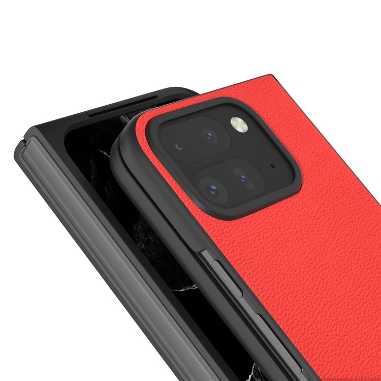 ABEEL For Google Pixel 9 Pro Fold 5G Case Genuine Cow Leather+PC Mobile Phone Cover - Red