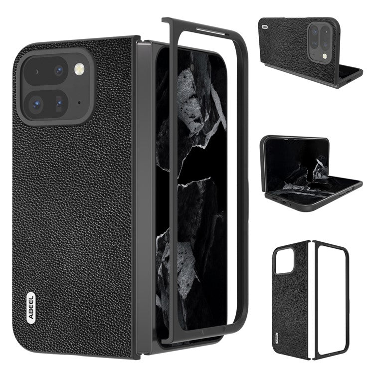 ABEEL For Google Pixel 9 Pro Fold 5G Phone Case Litchi Texture Genuine Cow Leather Hard PC Cover - Black