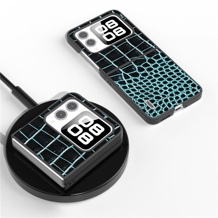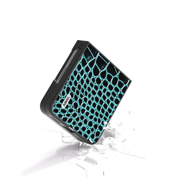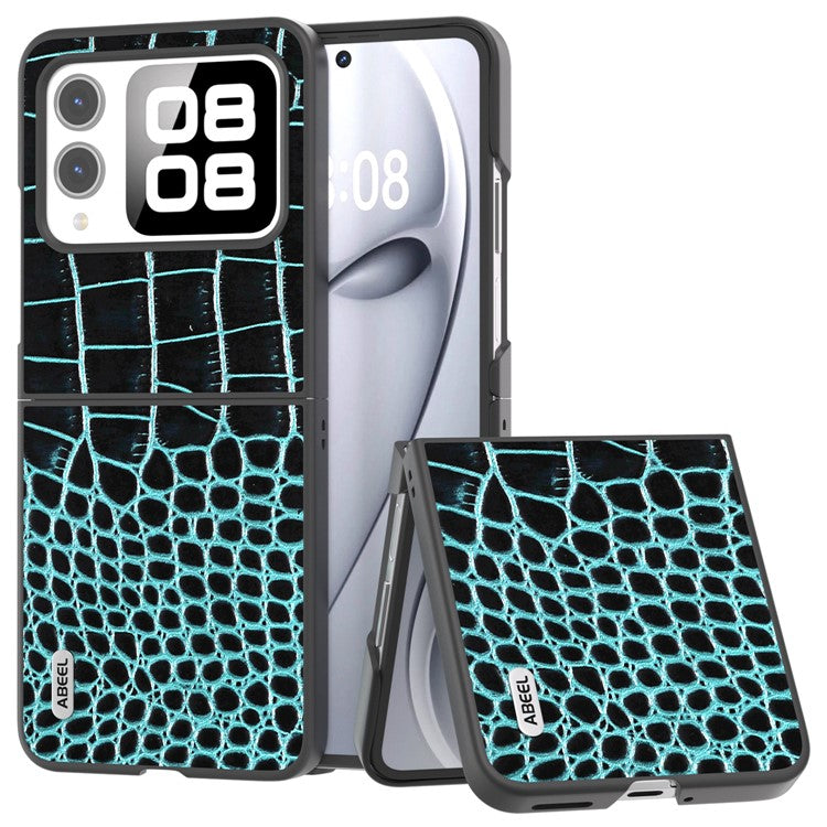 ABEEL For Huawei nova Flip 5G Case Genuine Cow Leather Back Phone Cover Crocodile Texture - Midnight Green