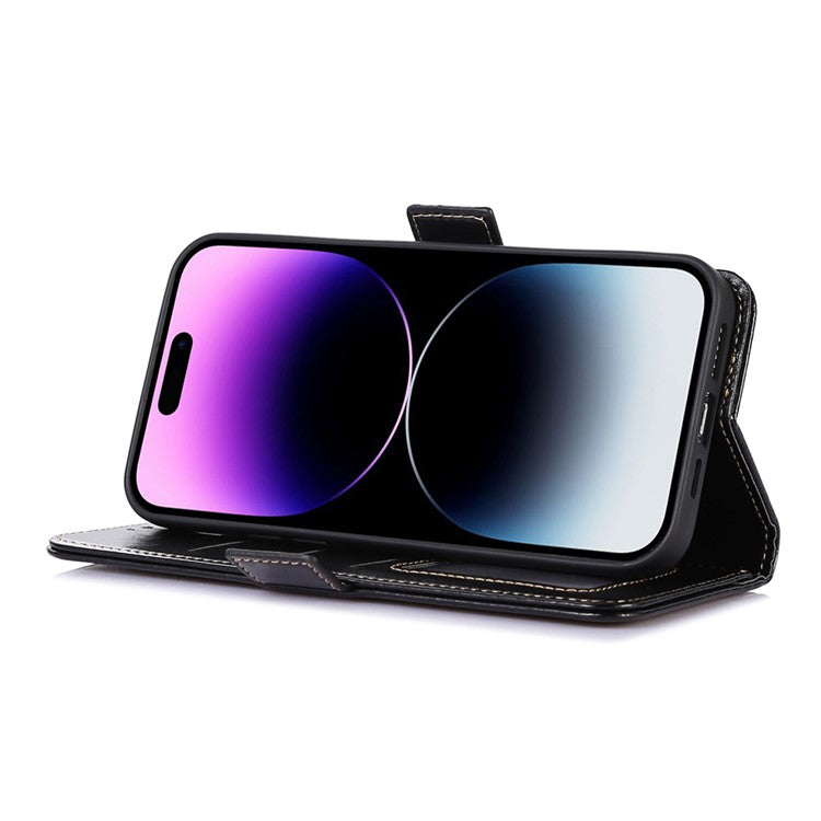 ABEEL For iPhone 16 Pro Case Wallet PU Leather Crazy Horse Texture Phone Cover - Black