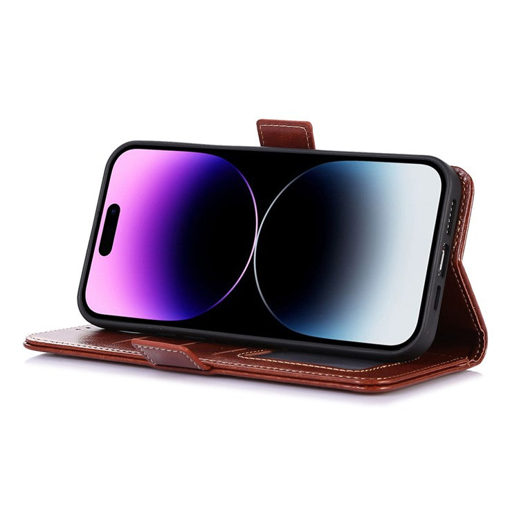 ABEEL For iPhone 16 Pro Case Wallet PU Leather Crazy Horse Texture Phone Cover - Brown