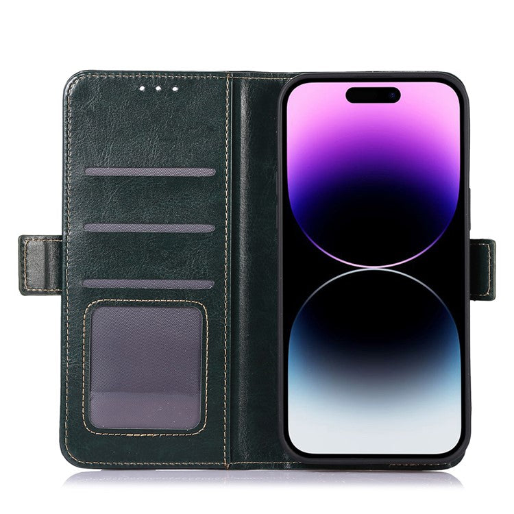 ABEEL For iPhone 16 Pro Case Wallet PU Leather Crazy Horse Texture Phone Cover - Green