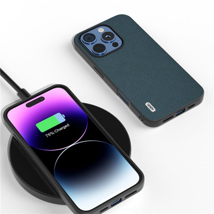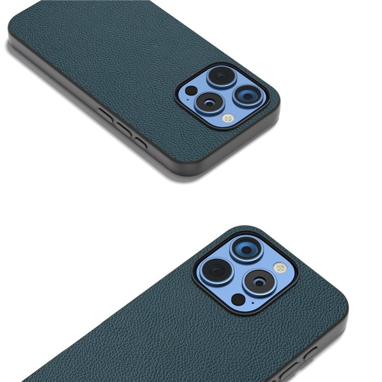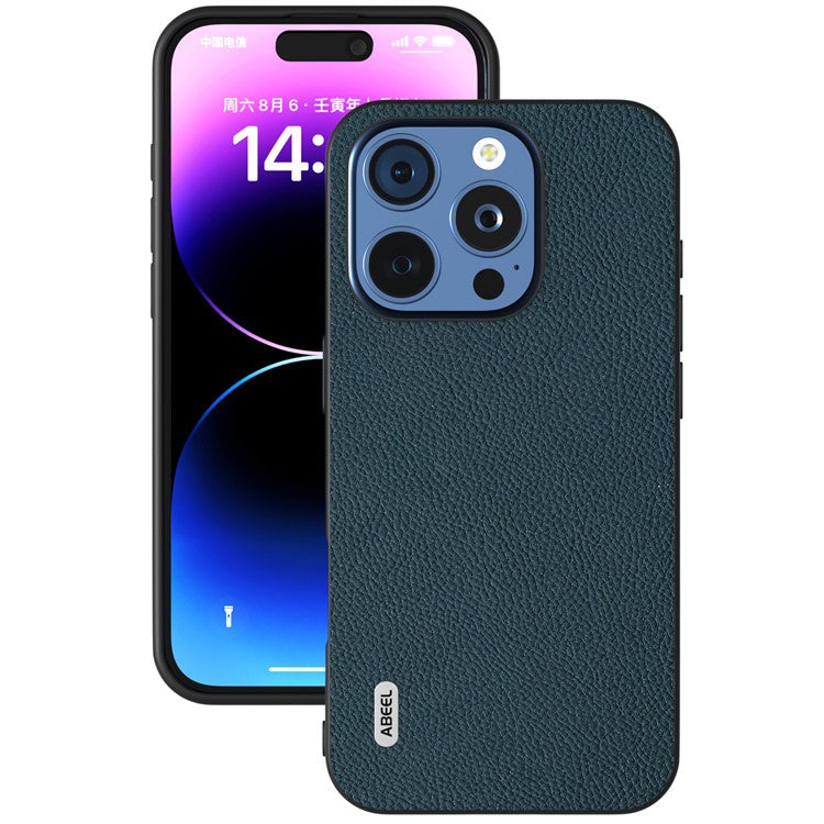 ABEEL For iPhone 16 Pro Cases Genuine Cow Leather+PC+TPU Phone Cover - Green