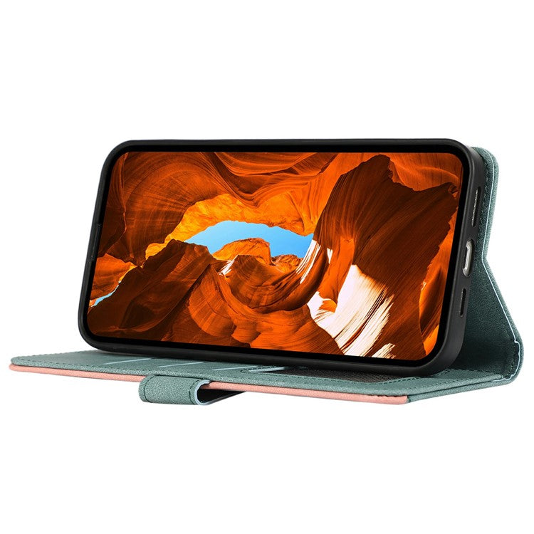 ABEEL For iPhone 16e Case Color Splicing Leather Flip Phone Cover RFID Blocking - Baby Blue