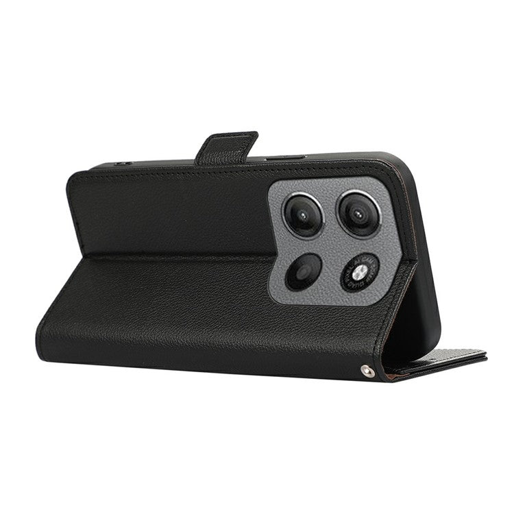 ABEEL For Motorola Moto G15 4G Case Litchi Texture Leather RFID Blocking Phone Cover - Black