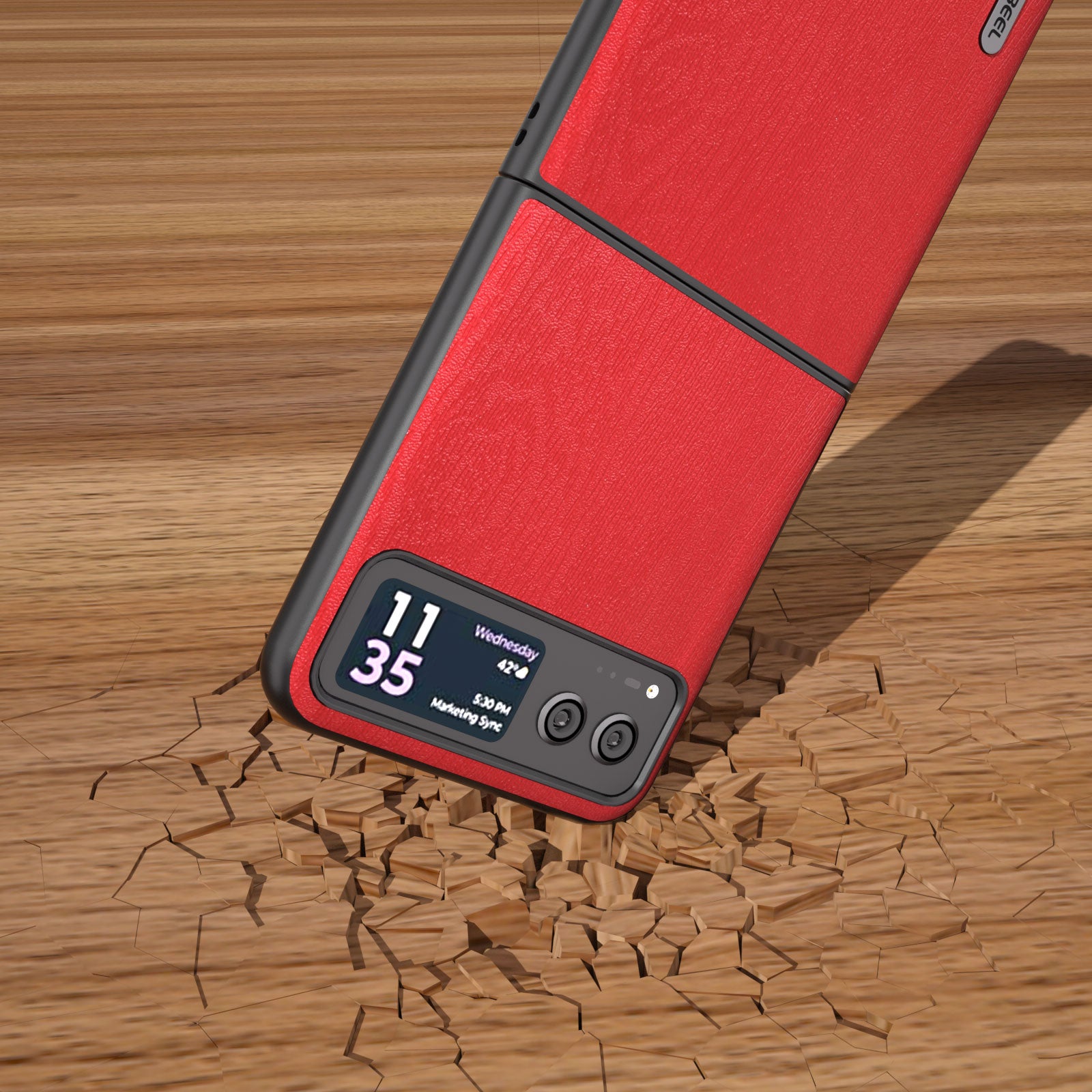 Uniqkart For Motorola Razr 40 5G Wood Texture Phone Case PU Leather Coated PC Fall-proof Cover - Red