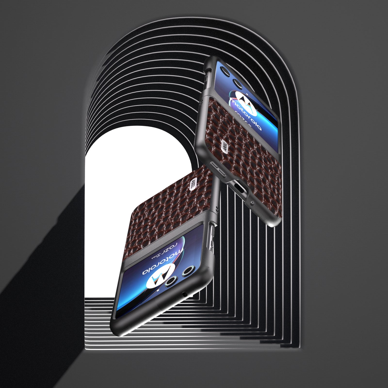 Uniqkart For Motorola Razr 40 Ultra 5G Crocodile Texture Slim Case Genuine Cow Leather+PC Protective Phone Cover - Coffee
