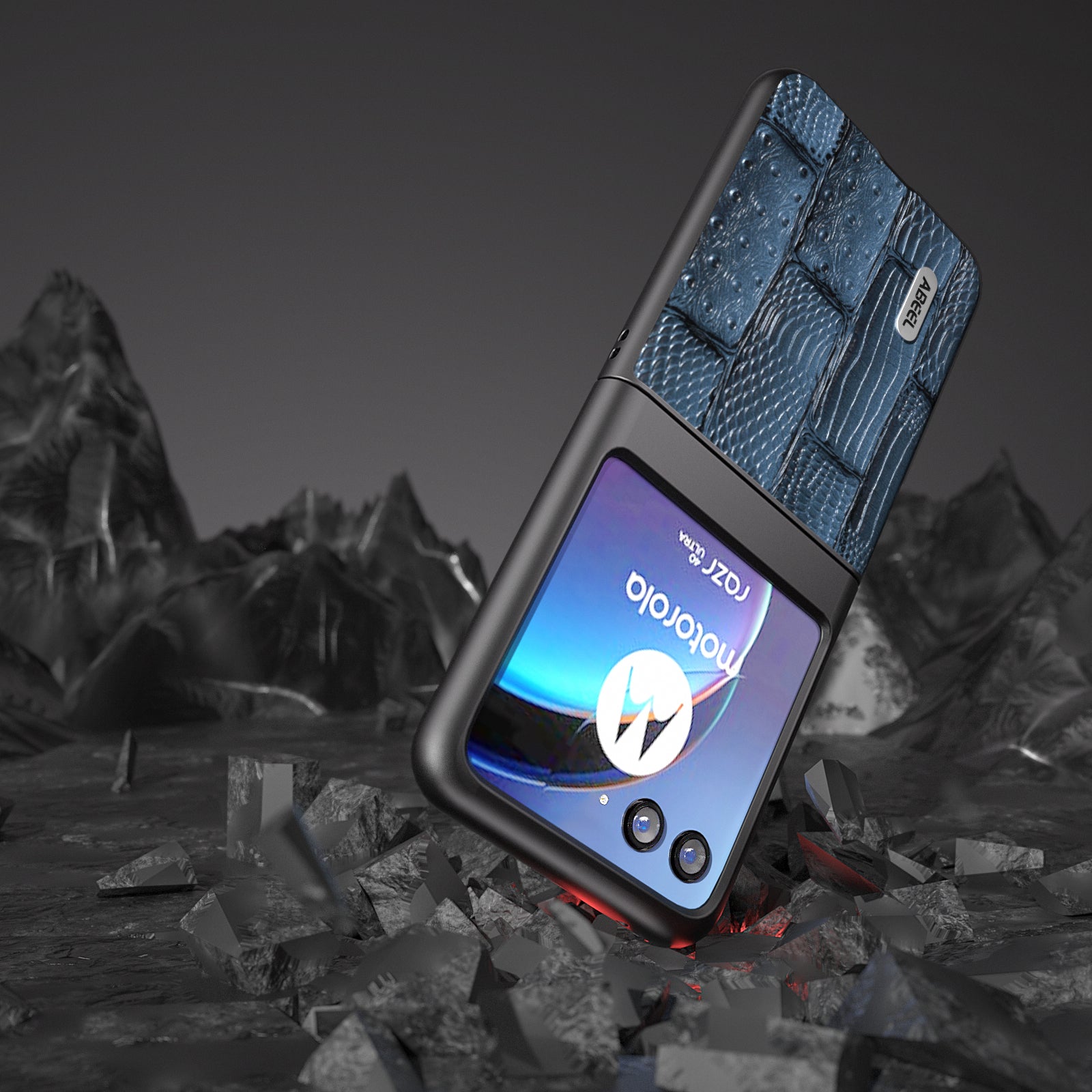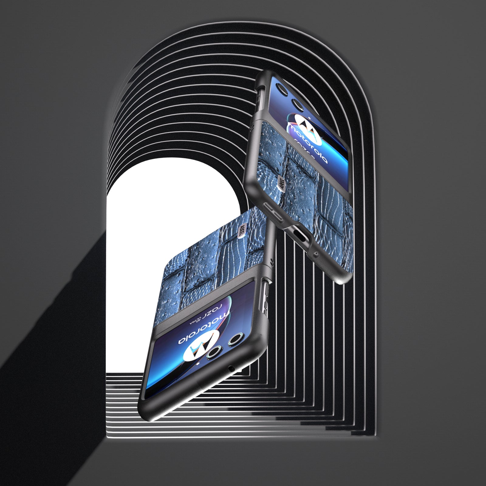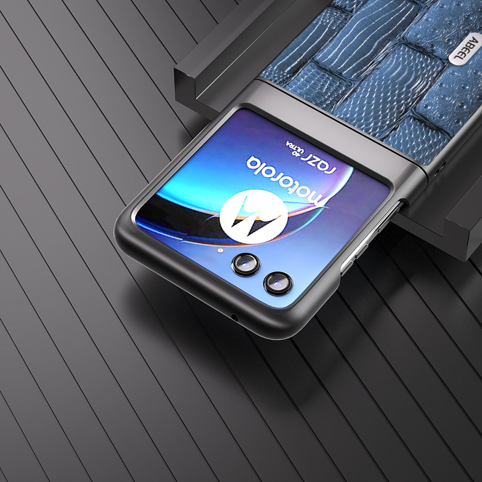 Uniqkart For Motorola Razr 40 Ultra 5G Mahjong Texture Phone Case Genuine Cow Leather+PC Ultra Slim Cover - Blue