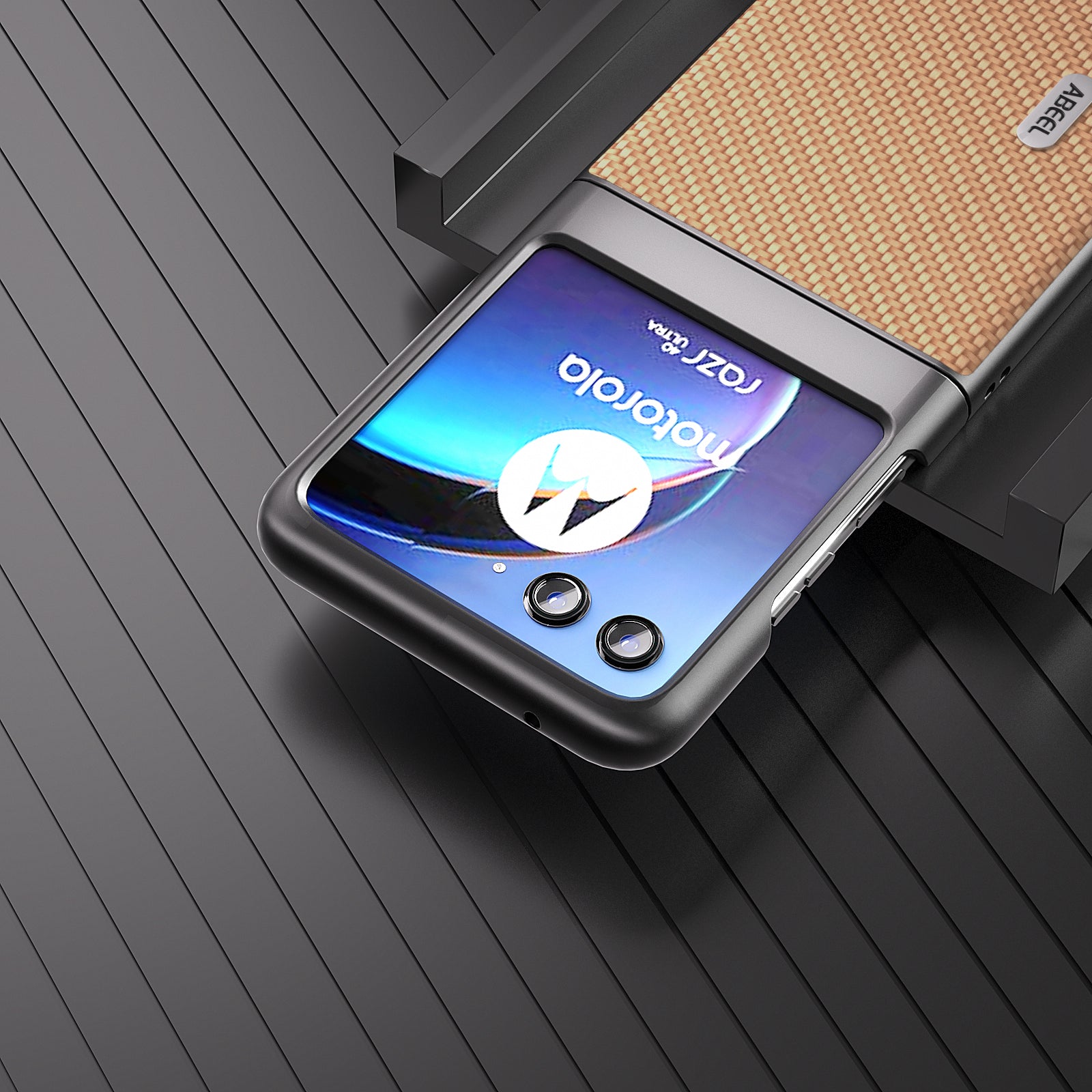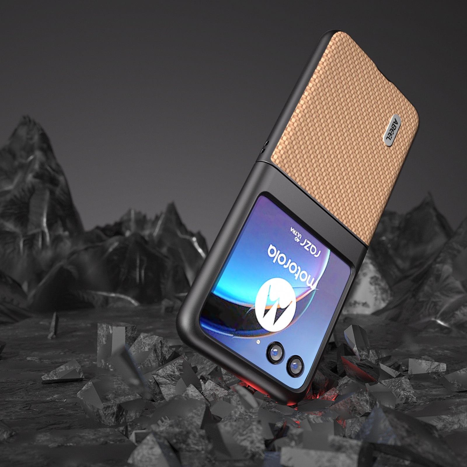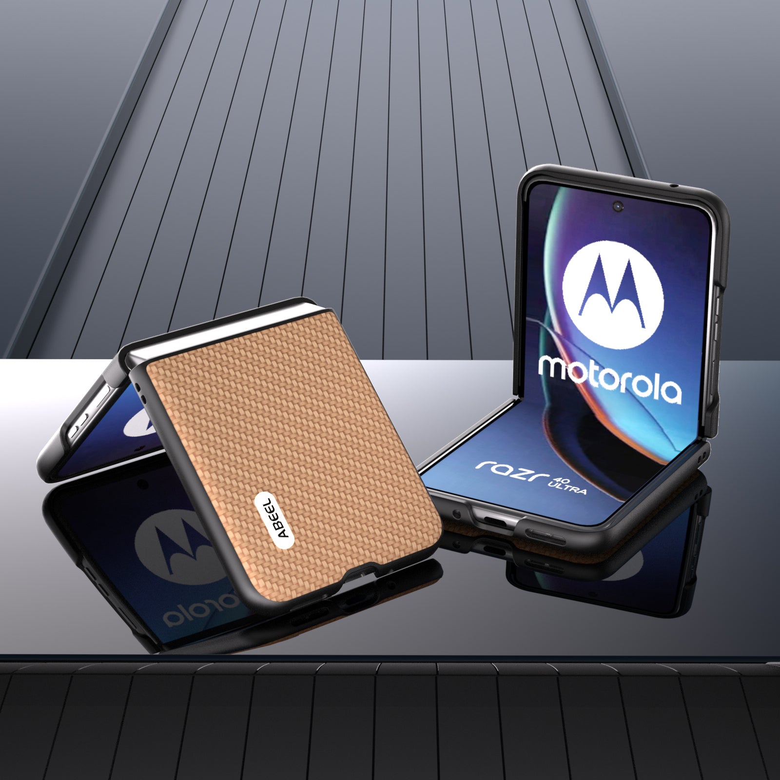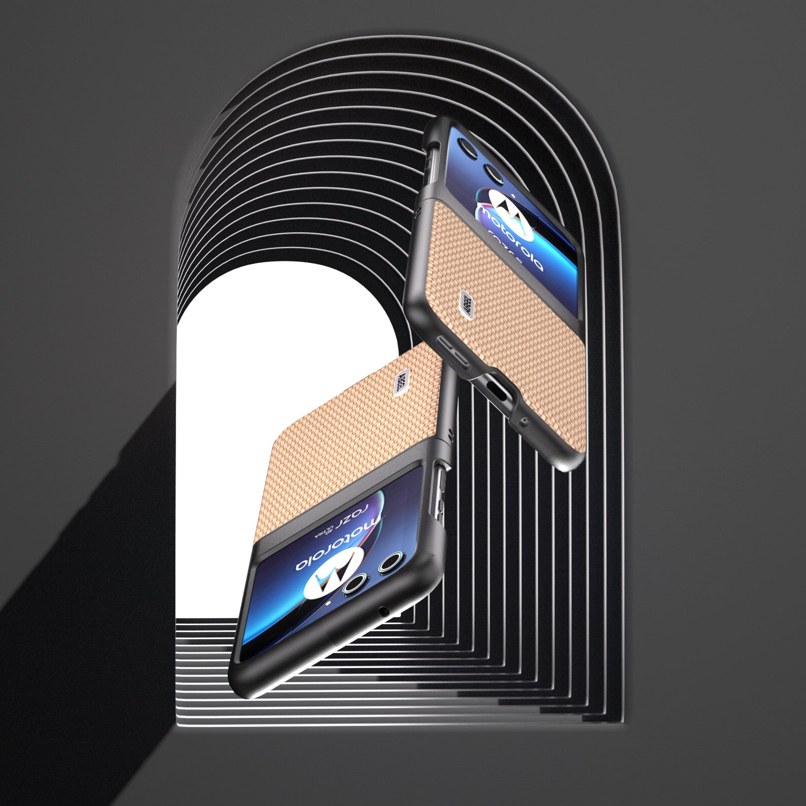 Uniqkart For Motorola Razr 40 Ultra 5G PU Leather Coated PC Case Carbon Fiber Texture Protective Phone Cover - Light Yellow