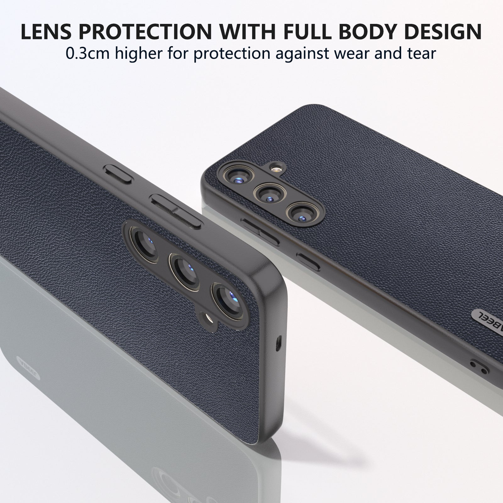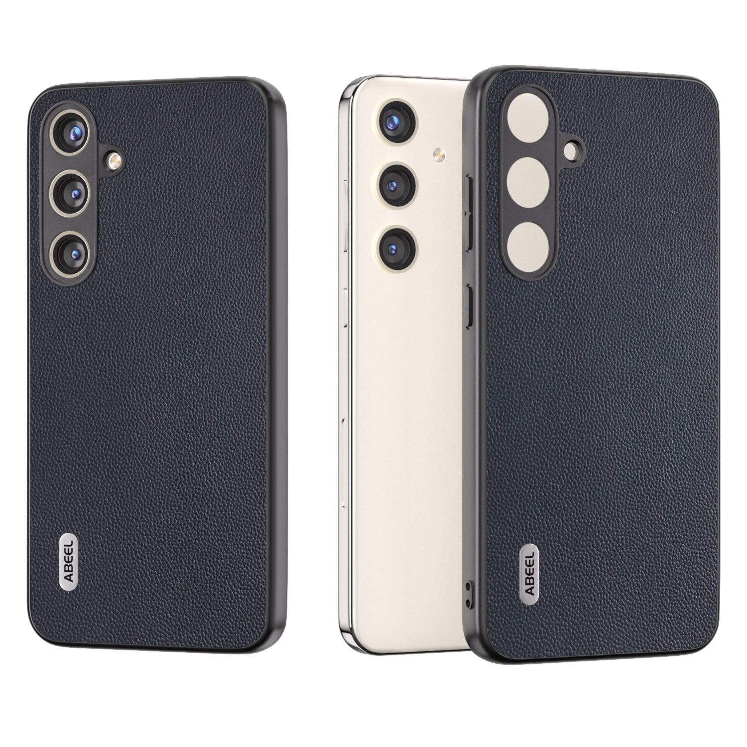 ABEEL For Samsung Galaxy S24+ Case Genuine Cow Leather+PC Scratch-resistant Smart Phone Shell  - Blue