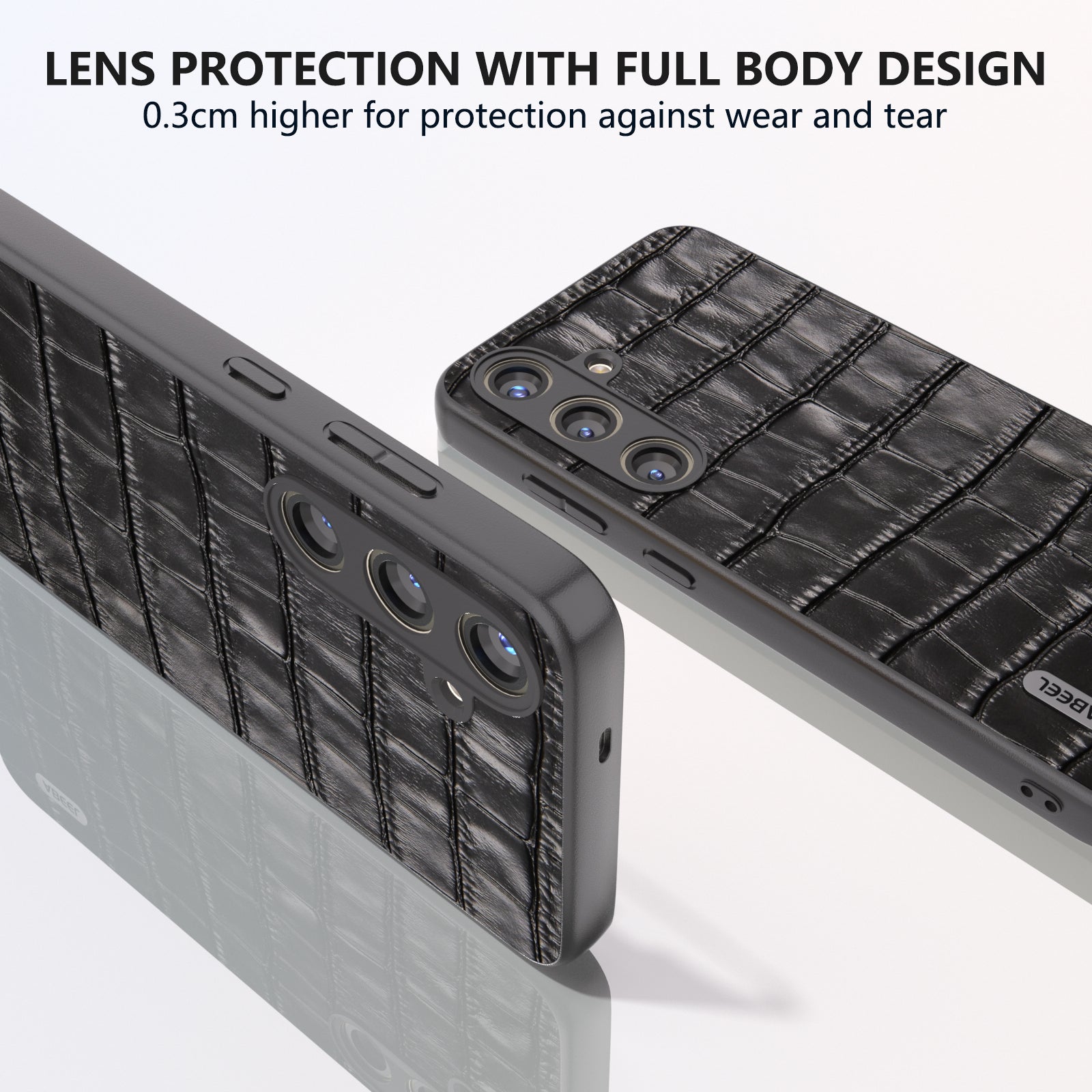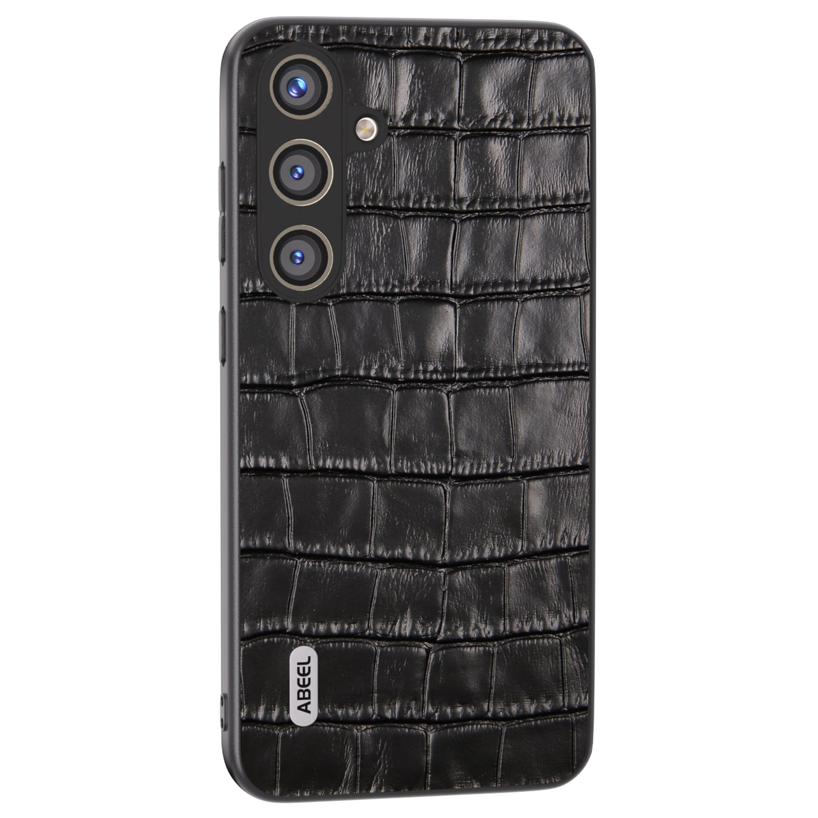 ABEEL For Samsung Galaxy S24+ Case Genuine Cow Leather Phone Cover Crocodile Texture - Black