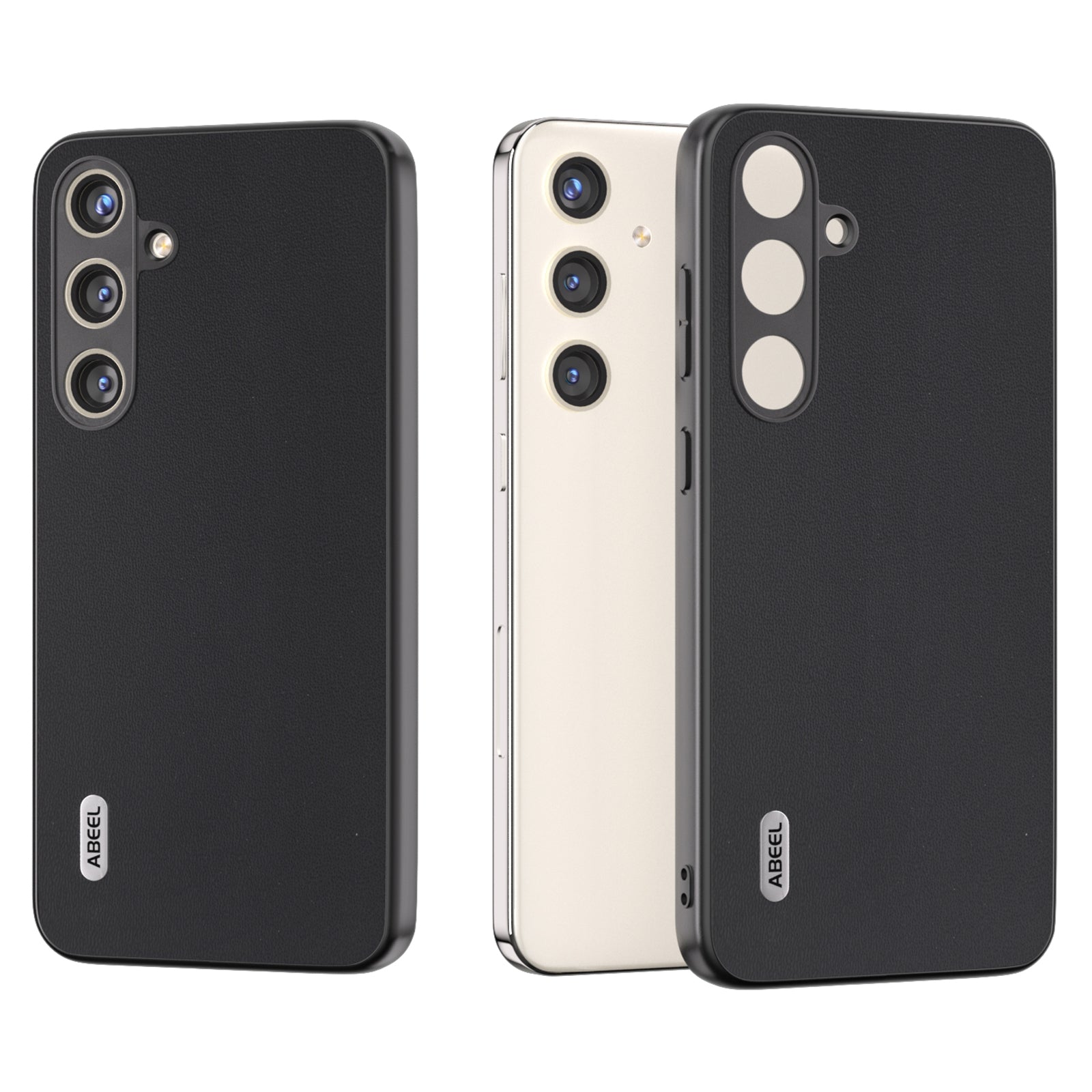 ABEEL For Samsung Galaxy S24+ Cell Phone Case Anti-fall Genuine Cow Leather + Hard PC Back Cover - Black