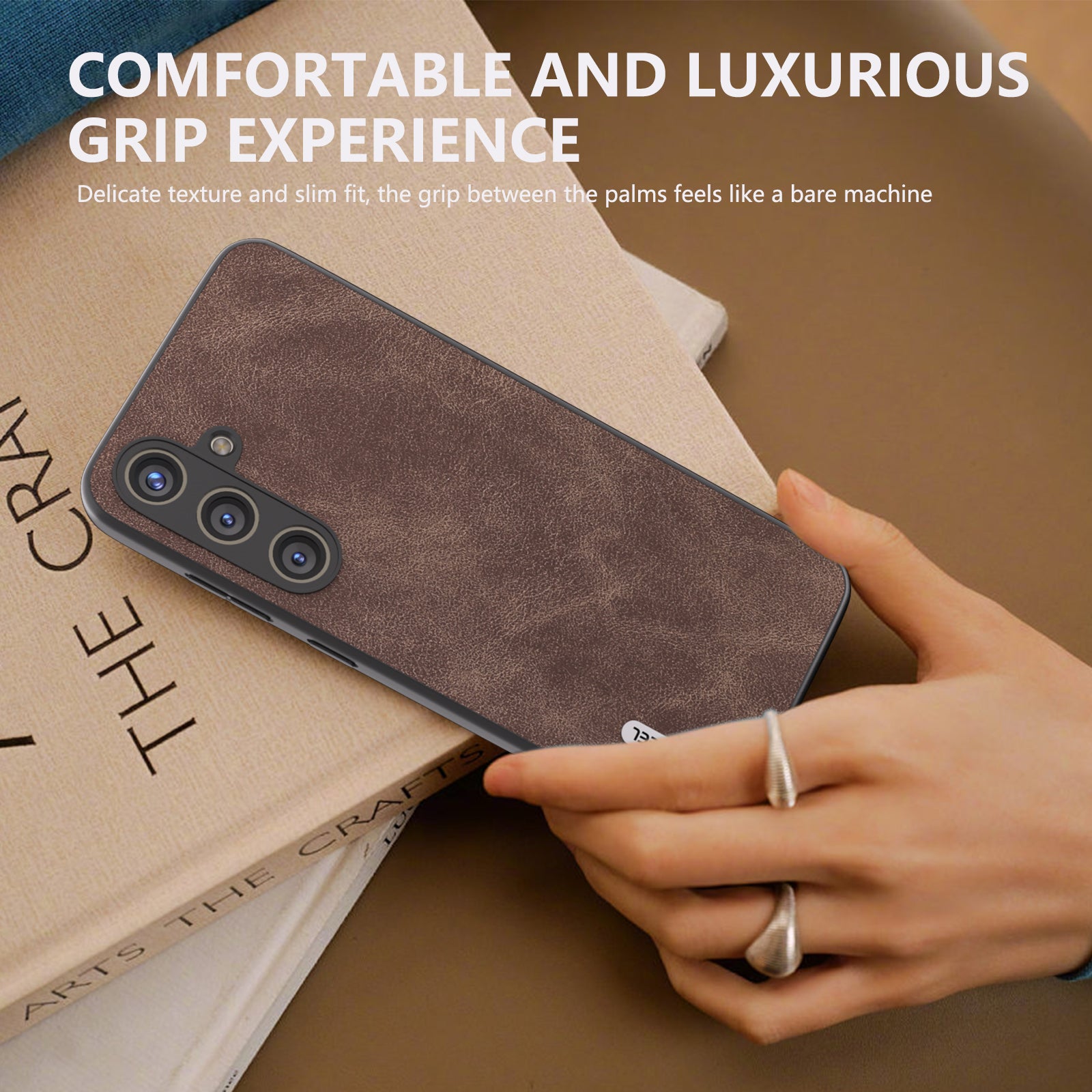 ABEEL For Samsung Galaxy S24+ Cell Phone Case PU Leather Coated PC Drop-resistant Protective Shell - Coffee