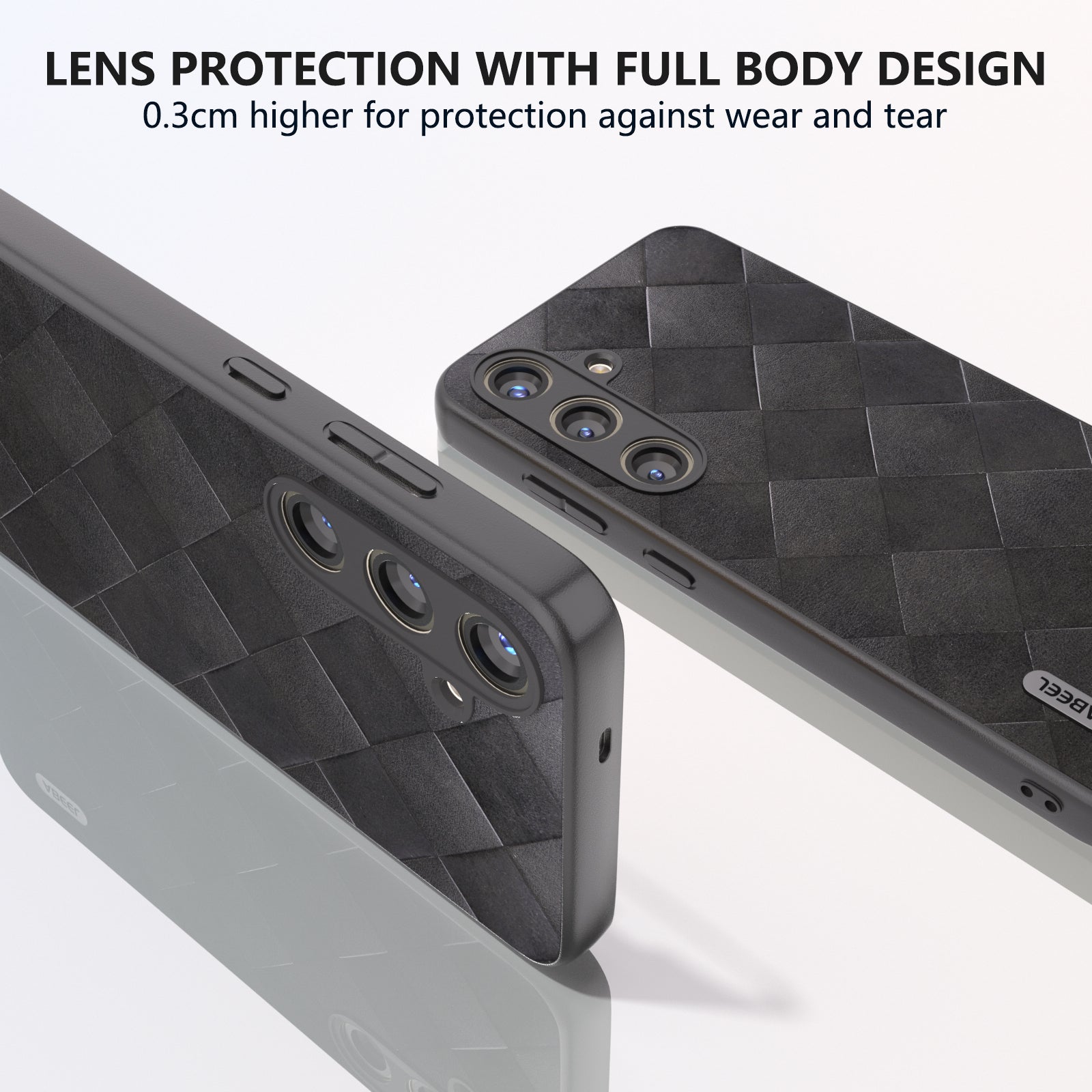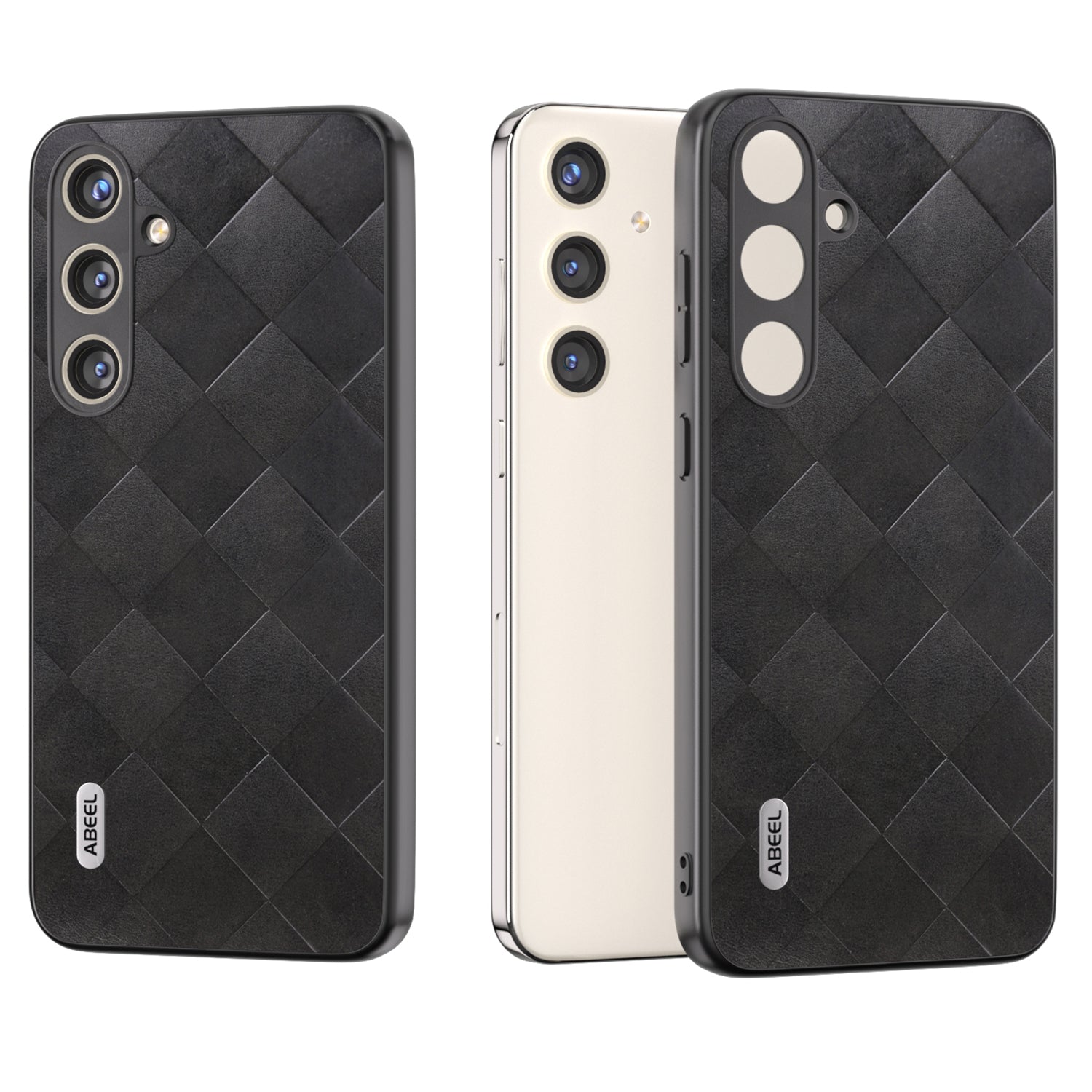 ABEEL For Samsung Galaxy S24 Grid Texture Phone Cover PU Leather Protective Back Case - Black