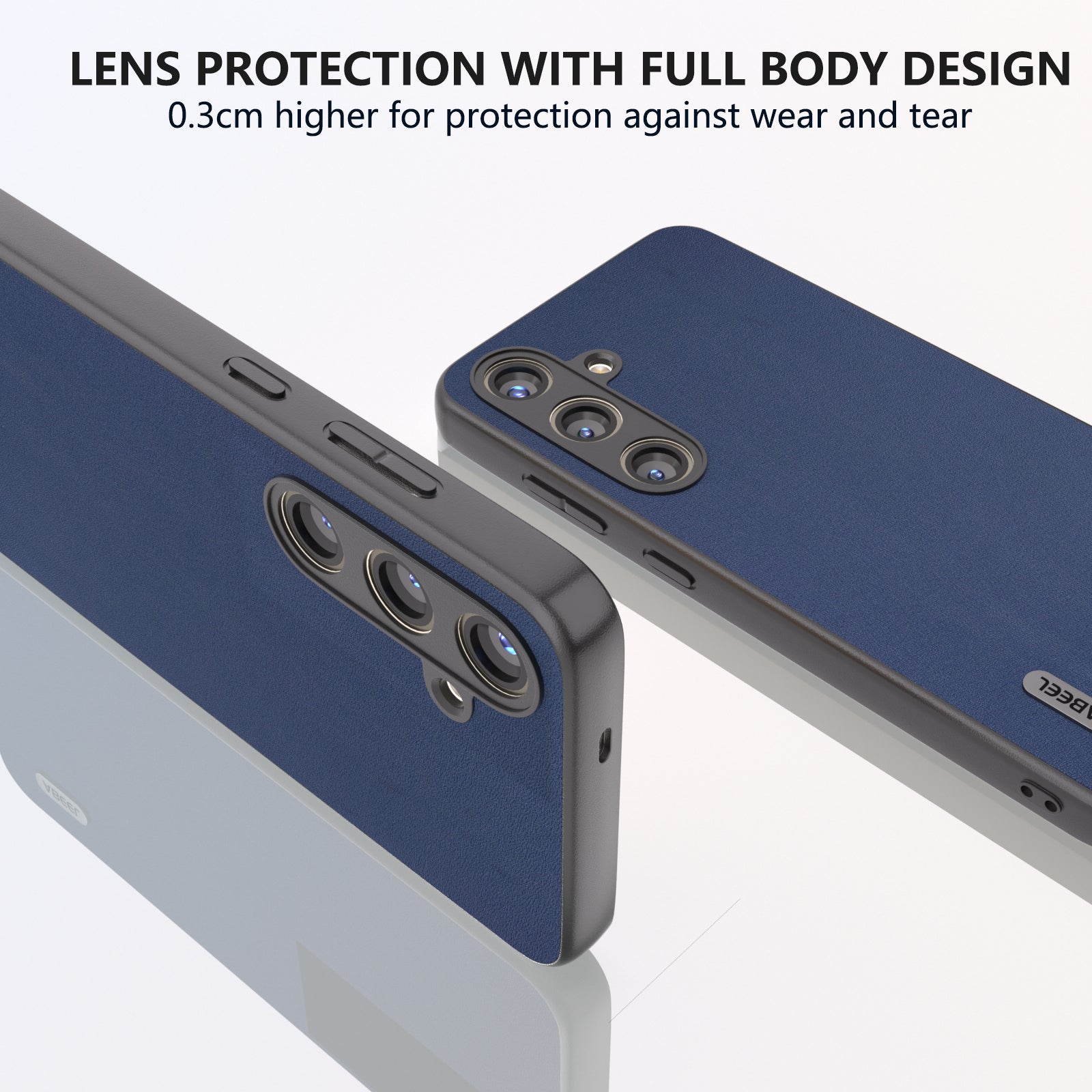 ABEEL For Samsung Galaxy S24+ Nappa Pattern Case Genuine Cow Leather Shockproof Cover  - Blue