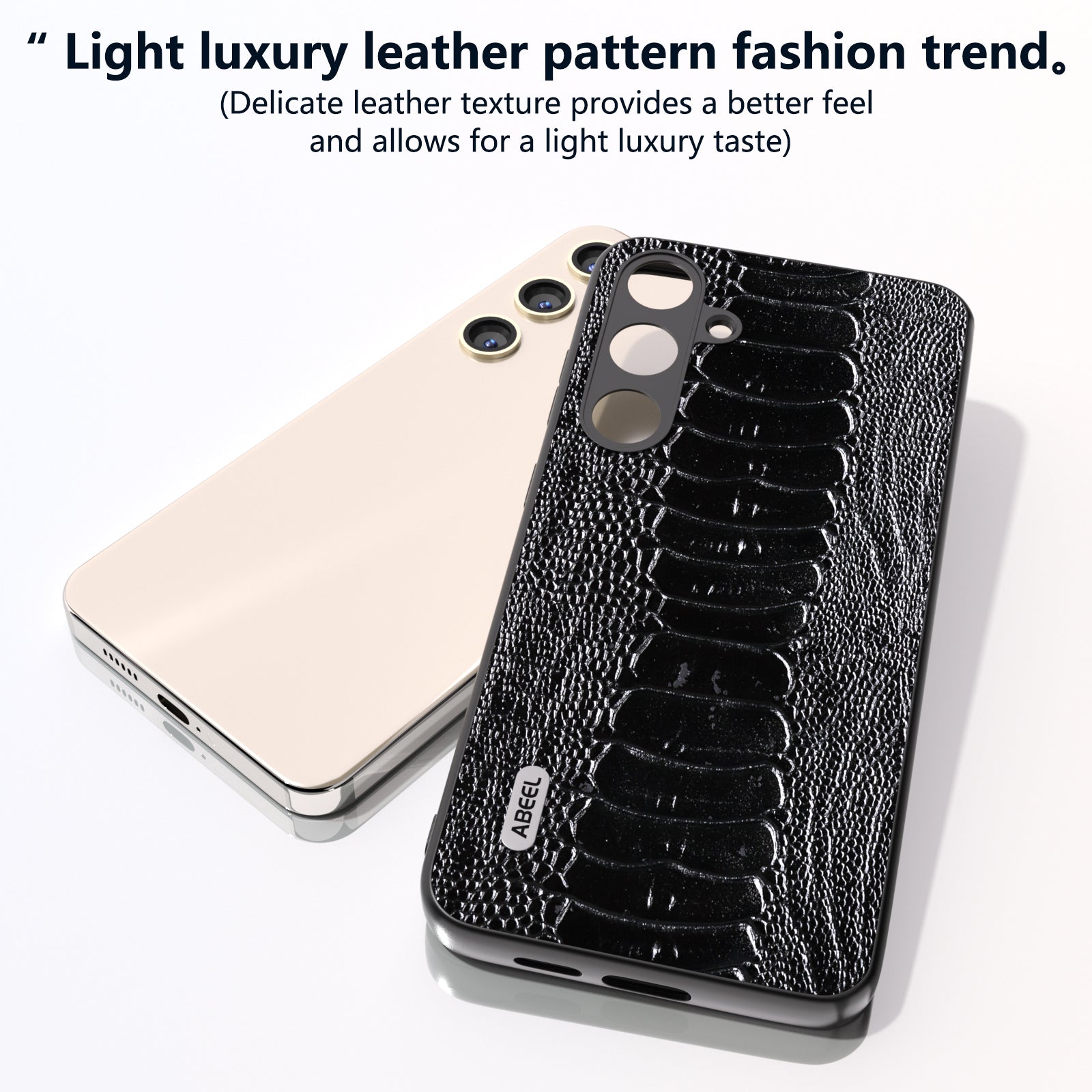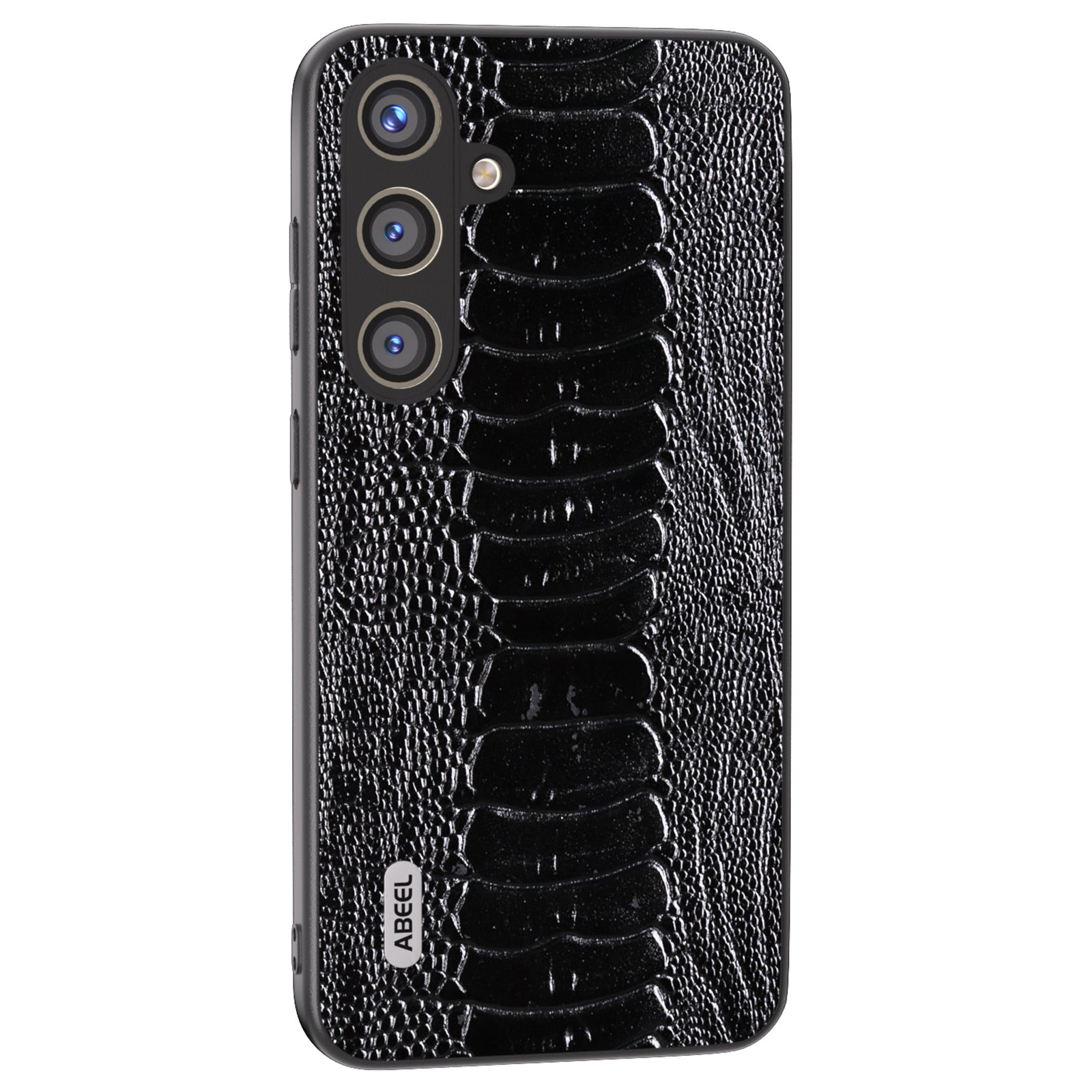 ABEEL For Samsung Galaxy S24 Phone Case Genuine Cow Leather Crocodile Texture Cover - Black