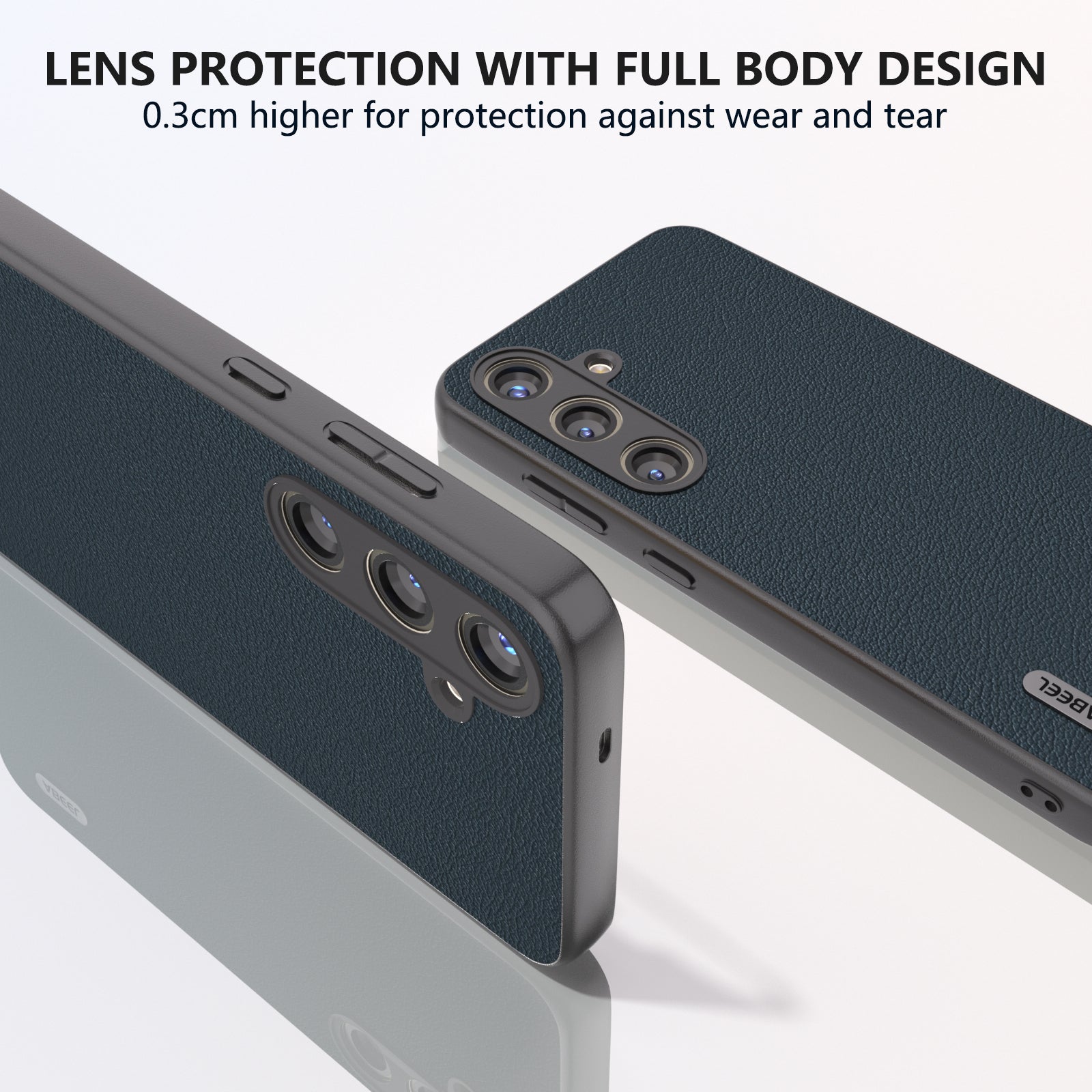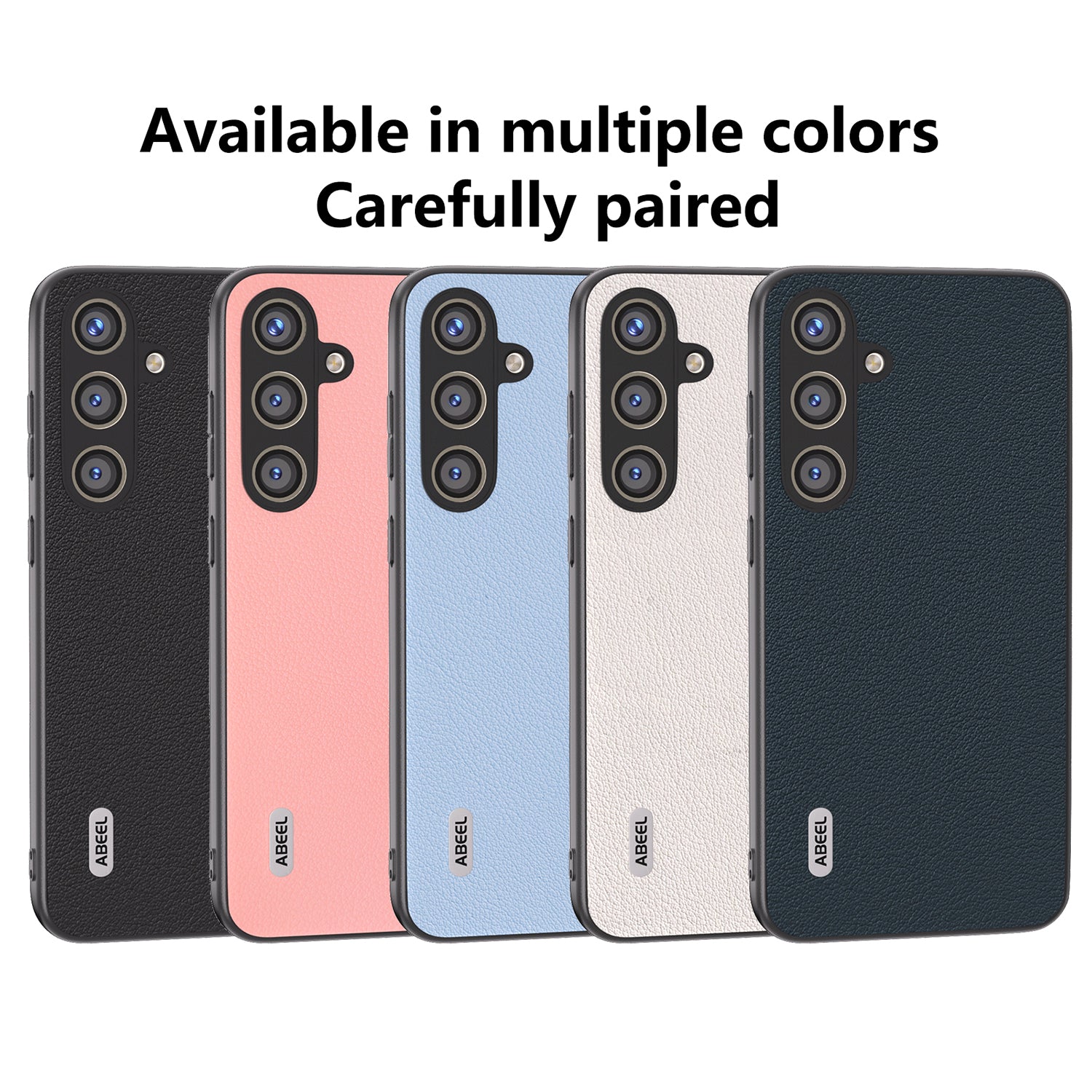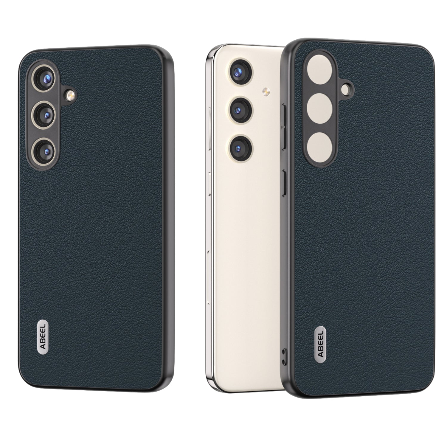 ABEEL For Samsung Galaxy S24 Phone Case Genuine Cow Leather Textured Protective Cover - Blackish Green