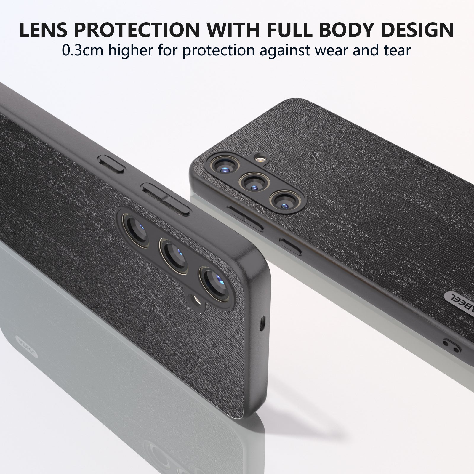 ABEEL For Samsung Galaxy S24+ Phone Case Wood Grain Anti-Scratch Leather Back Cover - Black